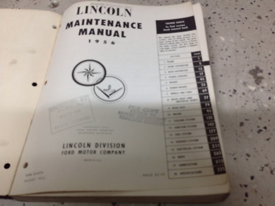 Manuale Di Riparazione E Manutenzione Dell'Officina OEM Factory Lincoln 1956