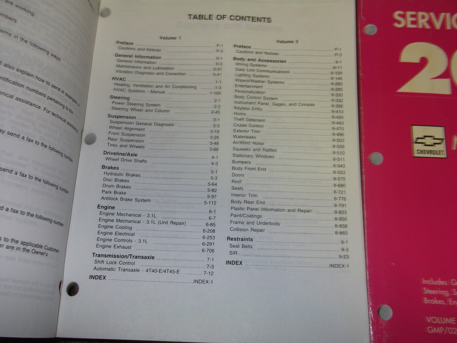2002 Manuale di servizio Chevy Malibu e manuali di riparazione dell'unita di trasmissione GM
