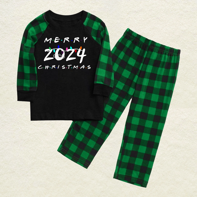 Merry Christmas 2024 Letter Print Matching Family Chritmas Pajamas Sets, Green P