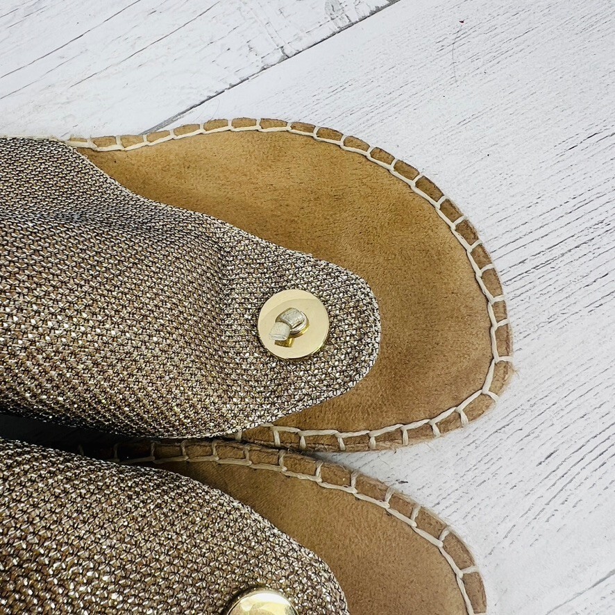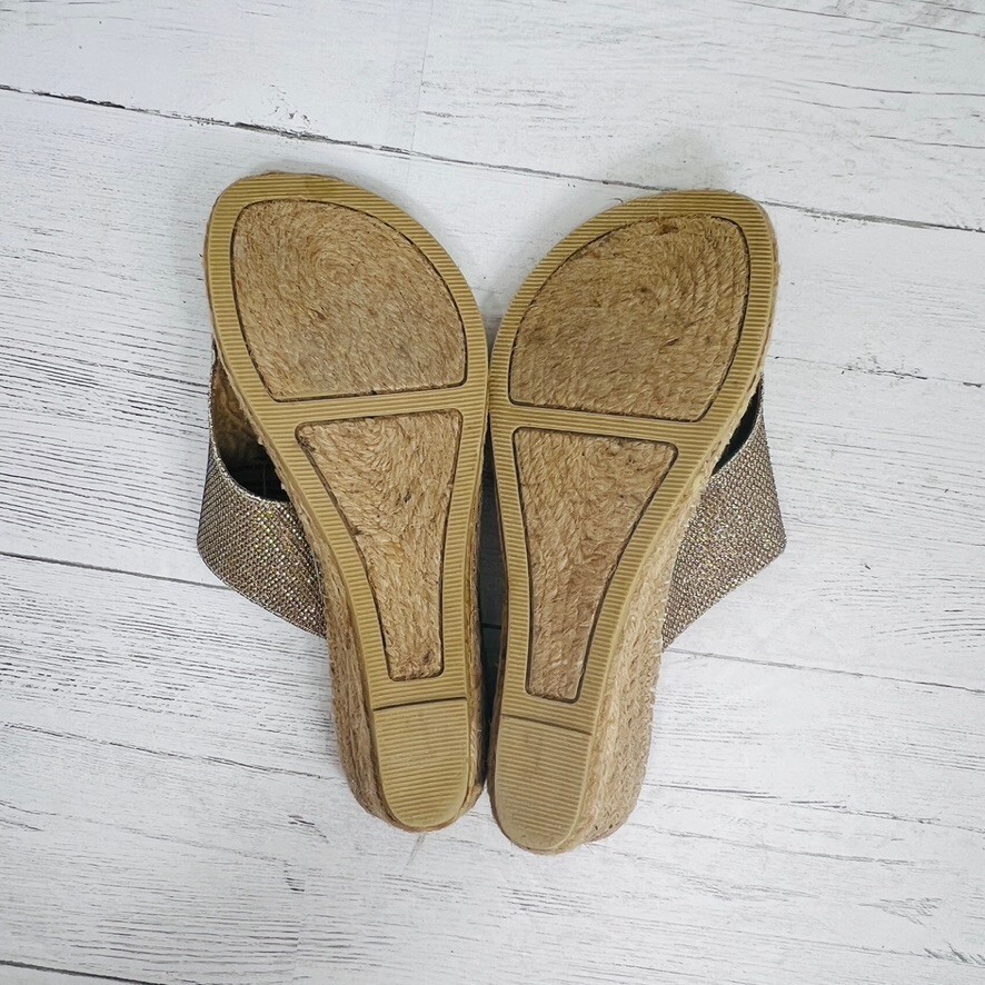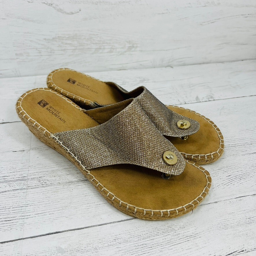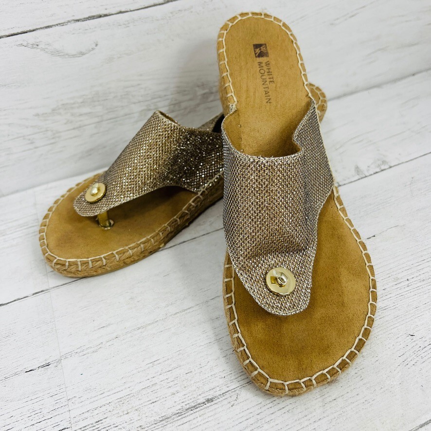 White Mountain Beachball Sandals 8.5M Gold Sparkle Wedge Espadrille Flip Flop