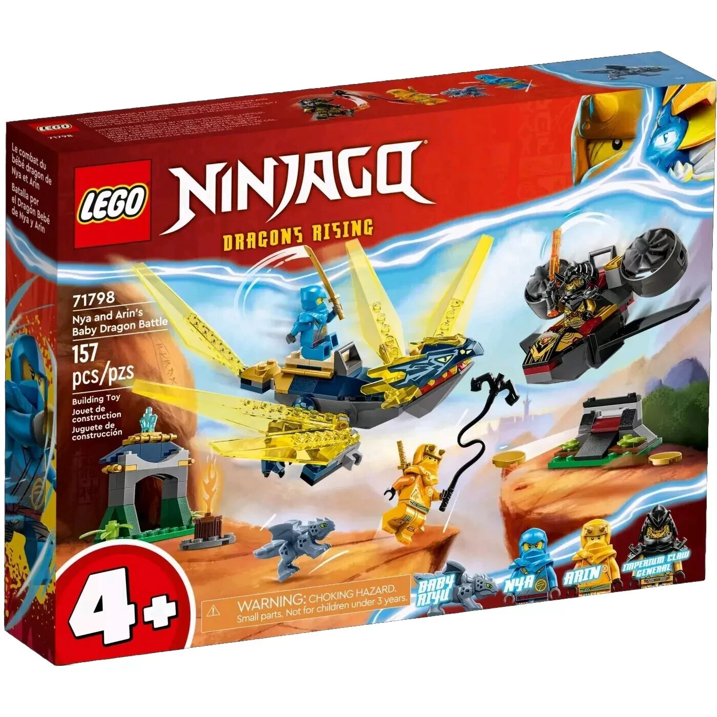 The LEGO Ninjago set 71798 features Nya and Arin's Baby Dragon Battle, with 157 pieces manufactured in 2020 and released in 2021. This limited edition set includes minifigures of Baby Riyu, Nya, Arin, and Imperium Claw General, catering to fans of the TV show and fantasy enthusiasts. The set comes in a sealed box from Denmark and is suitable for ages 4 and up, offering a fun building experience for both children and adults. Enjoy free shipping with this exciting LEGO set.