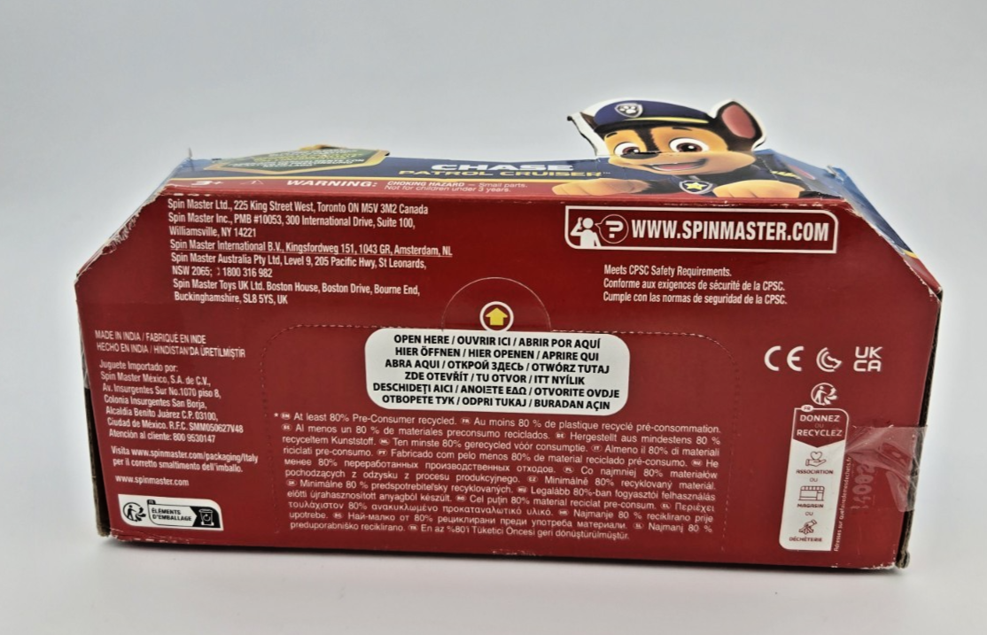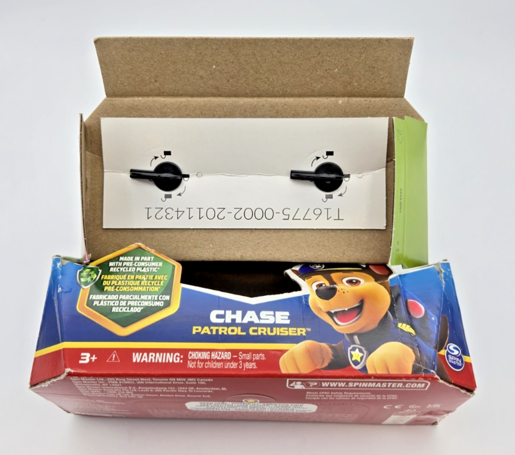 New Paw Patrol Chase Patrol Cruiser vehicle, featuring authentic design details and functional wheels for smooth push-and-roll play. Modeled after the police cruiser seen in the animated series, this vehicle is designed to fit standard-size Paw Patrol figures. The cruiser features realistic police decals, molded seat detail, and sturdy construction, making it suitable for interactive rescue play on various surfaces. Ideal for use with Paw Patrol playsets or on its own, the Chase Patrol Cruiser encourages imaginative roleplay and storytelling.