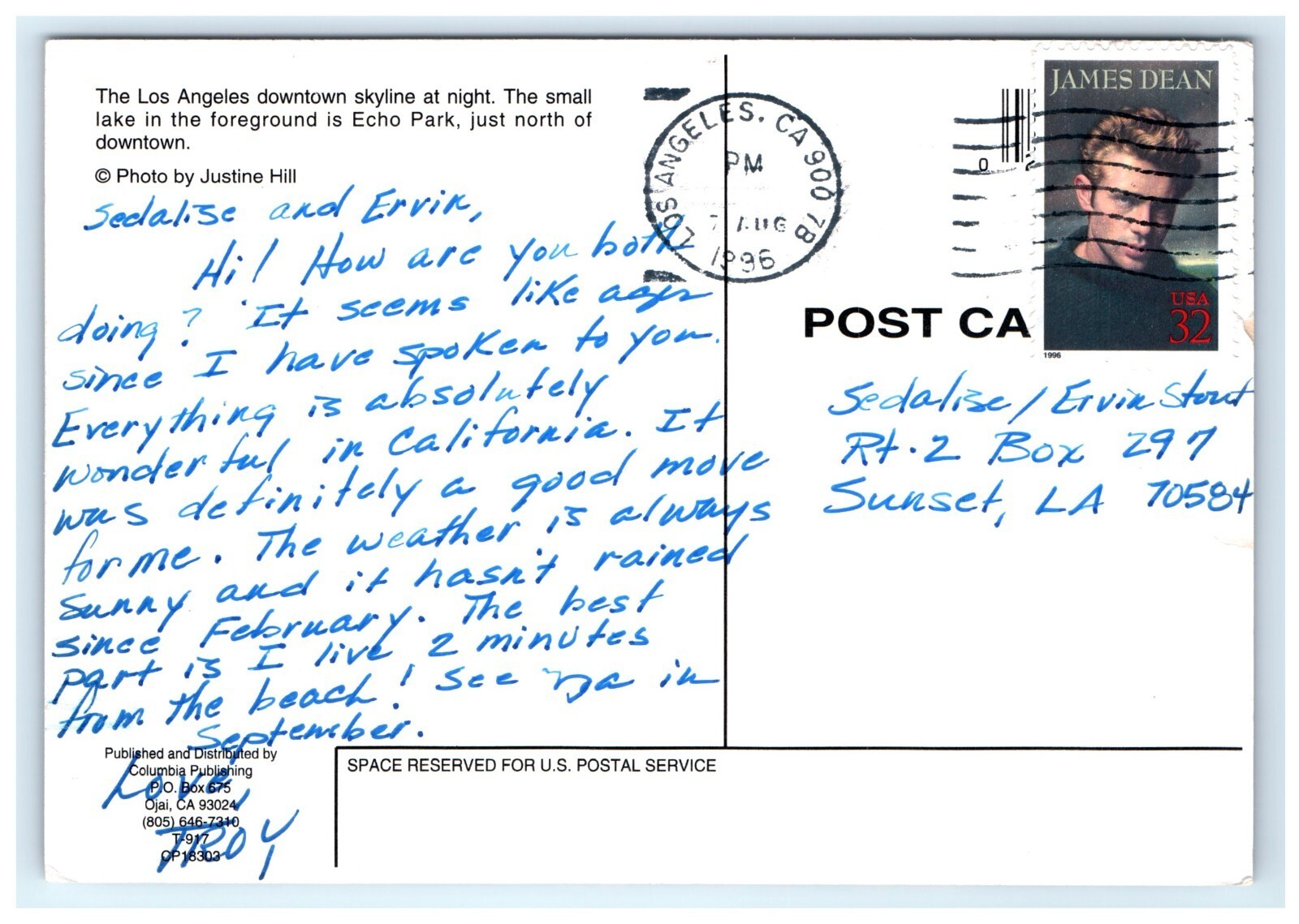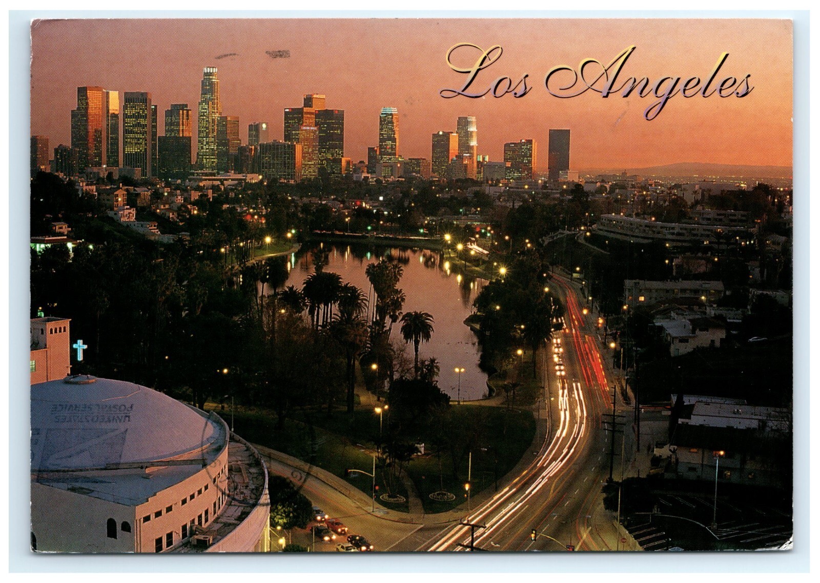 Downtown Skyline Night Echo Park Los Angeles CA Postcard