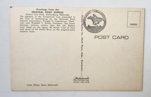 Vintage Divided Back Chrome Postcard Featuring Greetings from the Original Pony Express Station City Park Located in Gothenburg Nebraska.