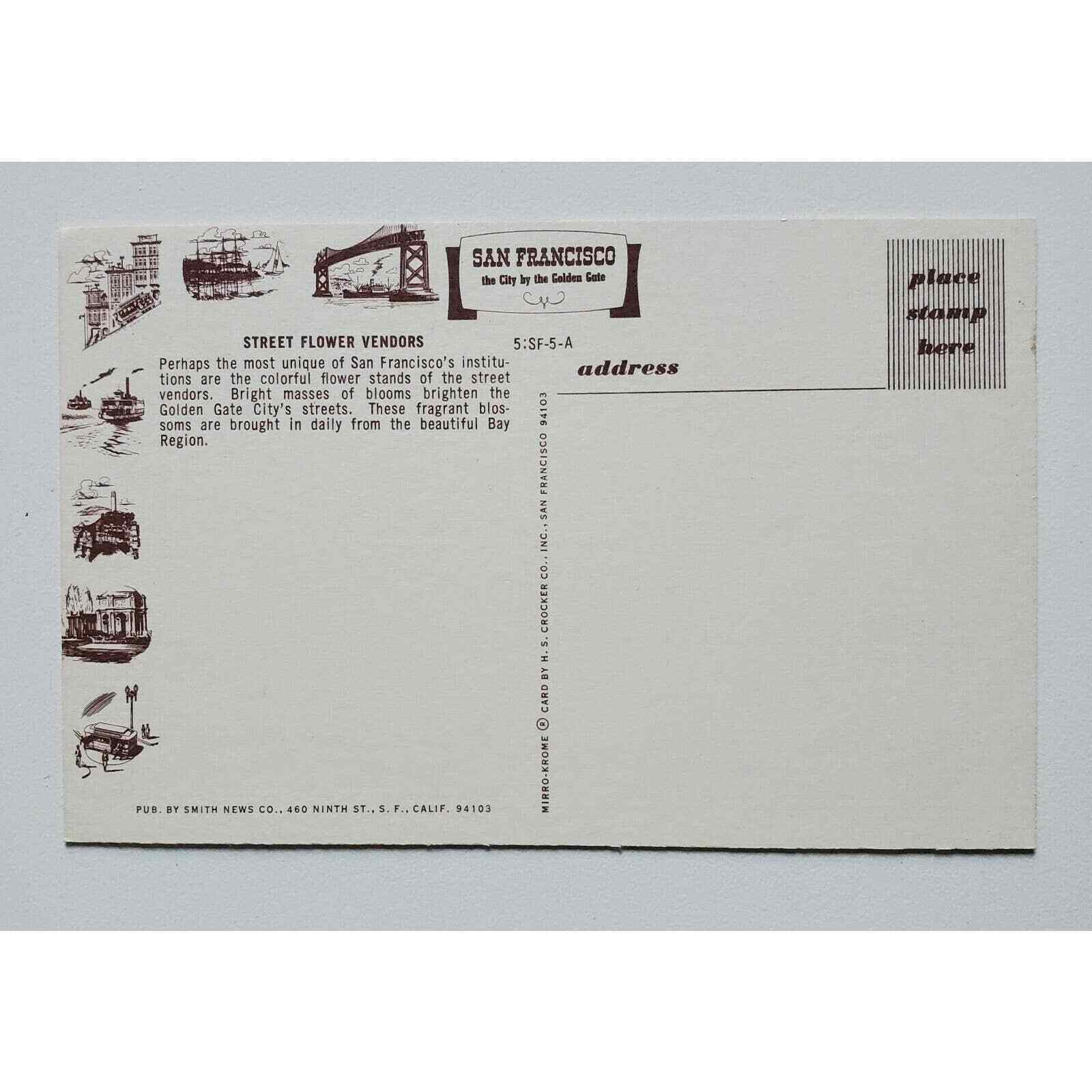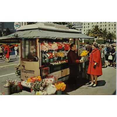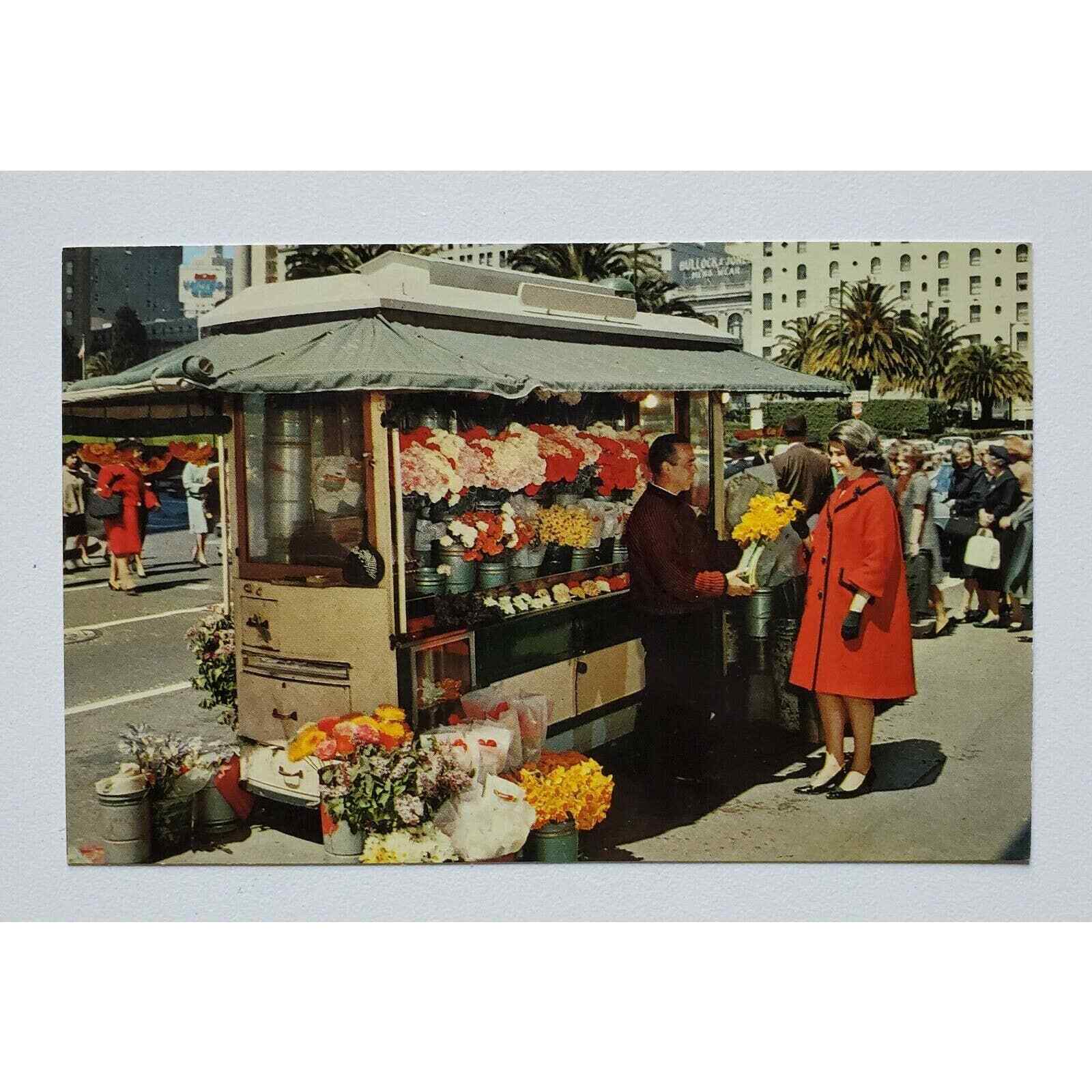 1950's Vintage Divided Back Chrome Postcard Featuring the Street Flower Vendors Located in San Francisco California.
