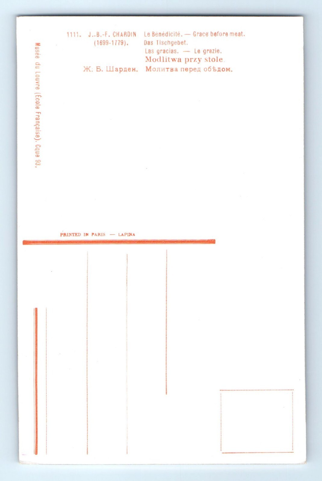 Vintage Divided Back Postcard Depicting 1740 Painting Grace Before Meat by Artist J. B. F. Chardin
