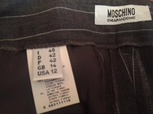 NWT MOSCHINO CHEAP & CHIC Wide LegbWool Gray Pants White Pinstripe SZ US 12