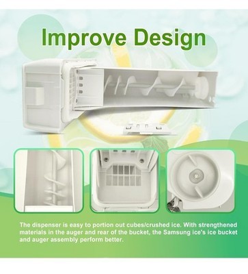 Upgraded Material for Samsung Ice Bin Replacement?Upgraded DA97-20156B Ice Maker Repair Kit for Samsung Refrigerator Parts, made of high quality thickened food grade material and stainless steel, the material is more reliable and durable. And precise matching. Our ice bucket replacement exceeds OEM standards. All goods will be tested before shipping!