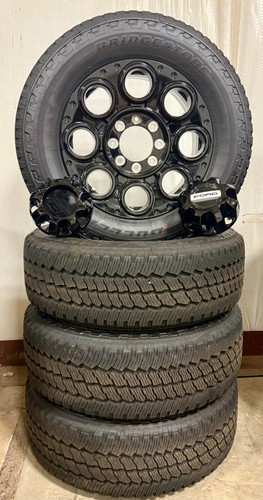 Set Of Four New Takeoff Ford F250 or F350 20" Black Wheels With 10 Ply Bridgestone Dueler A/T 275/65R20 Black Wall Tires.