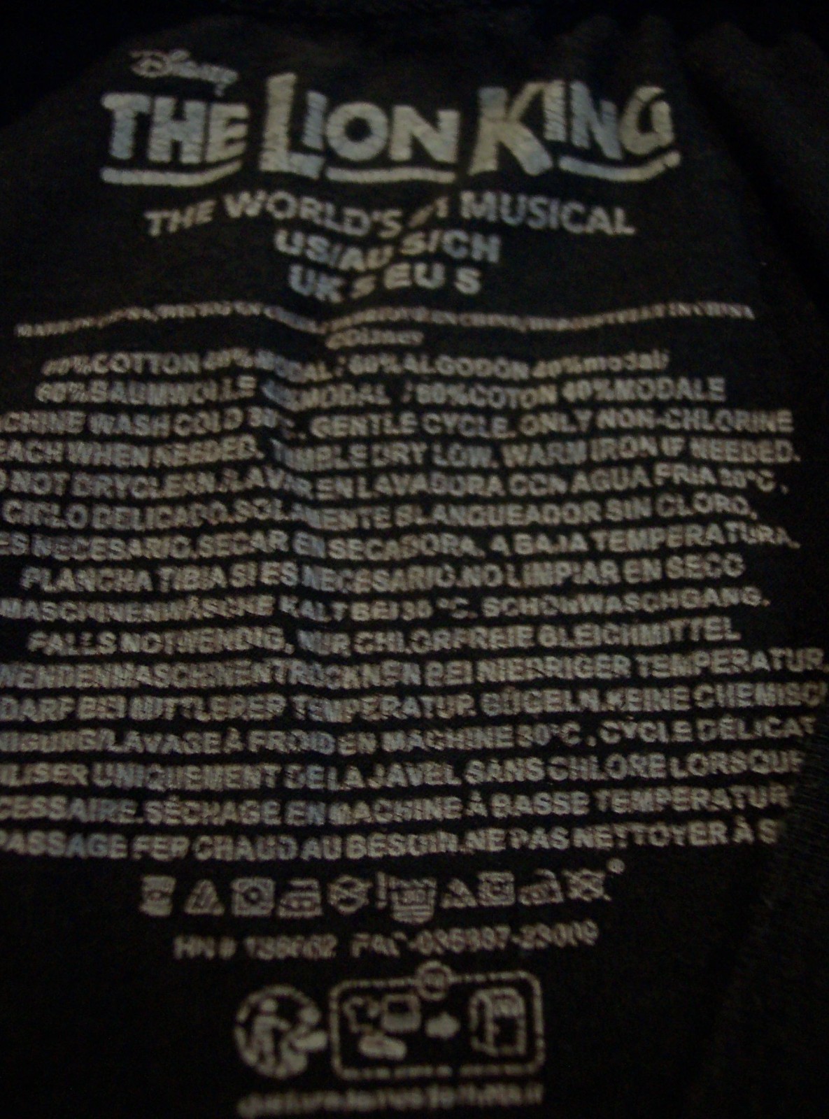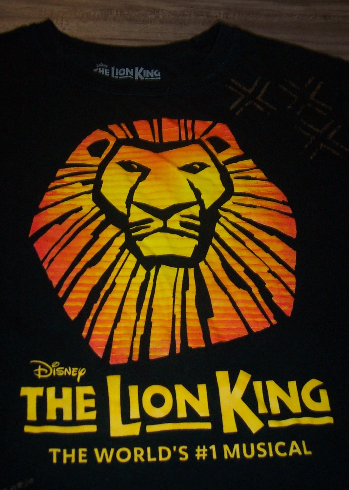 This is a Walt Disney THE LION KING THE MUSICAL T-shirt. It is a size SMALL. It is 19 1/2 inches from armpit to armpit and 26 inches in length. It is in great condition. It is CLEAN! No Stains, Tears, or Defects. Combine items to save on shipping. AD
