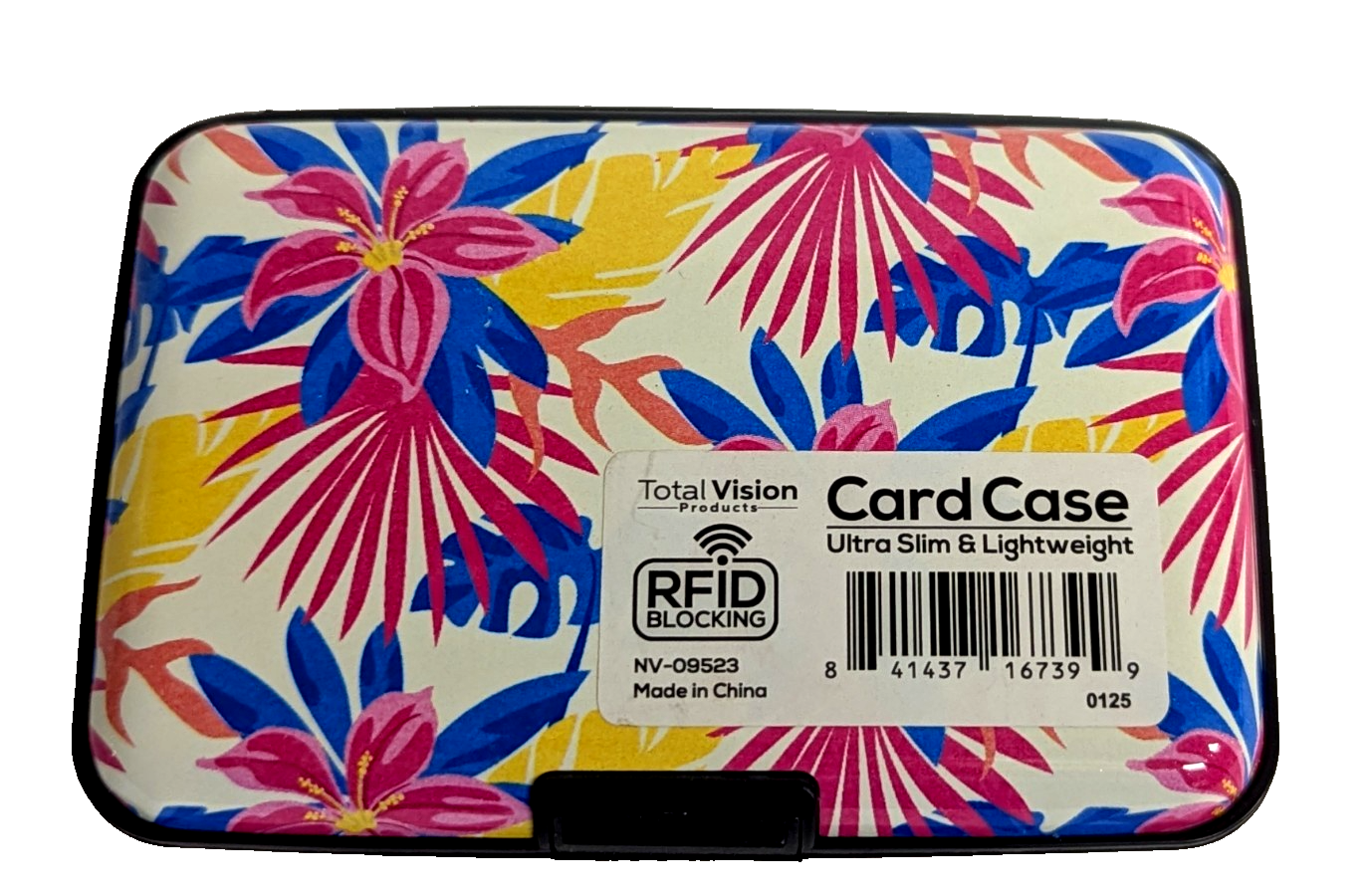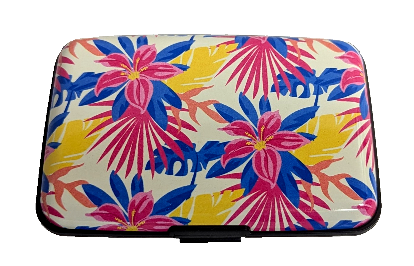 Total Vision RFID Card Case Ultra Slim Lightweight Metal Tropical Flowers NEW