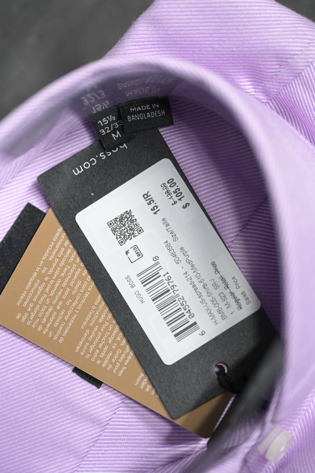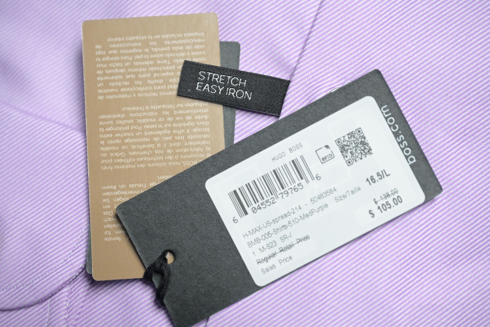 NWT Hugo Boss Men's Max Spread Easy Iron Sharp Fit Med Purple Stretch Cotton Dress Shirt