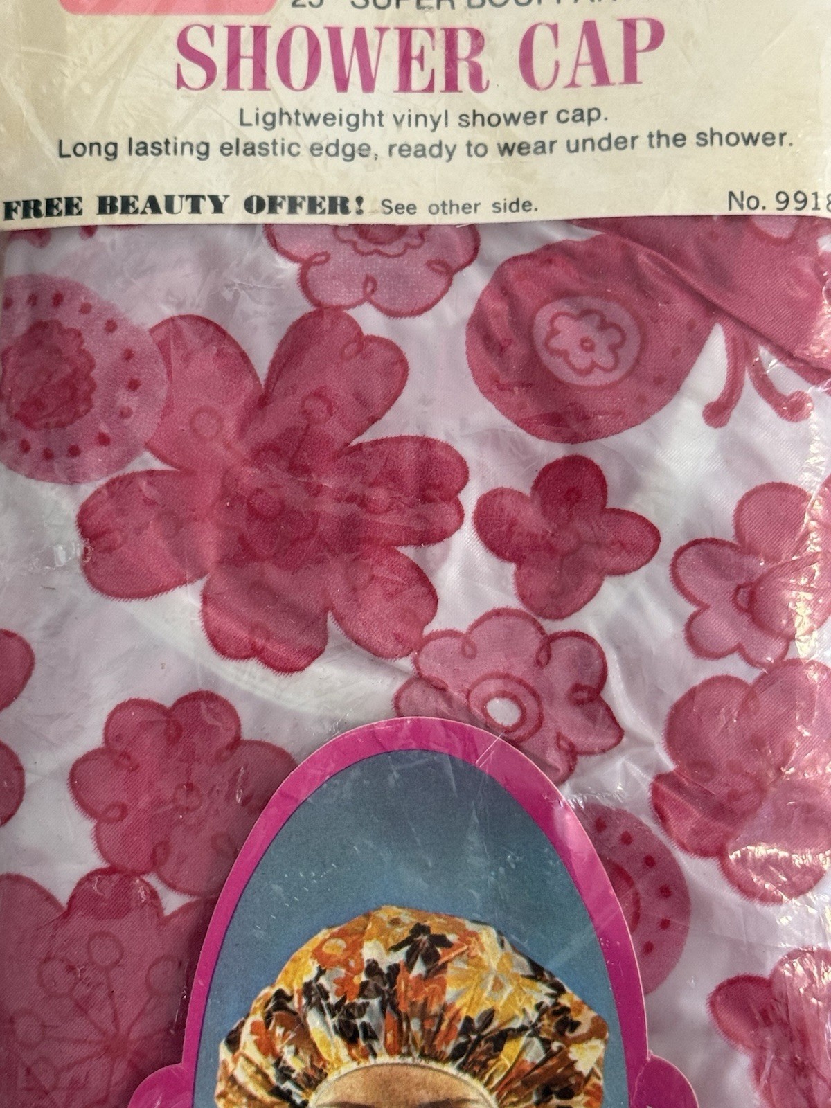 Vintage Super Bouffant 25" Shower Cap Floral Vinyl PINK Sealed Package Tip Top