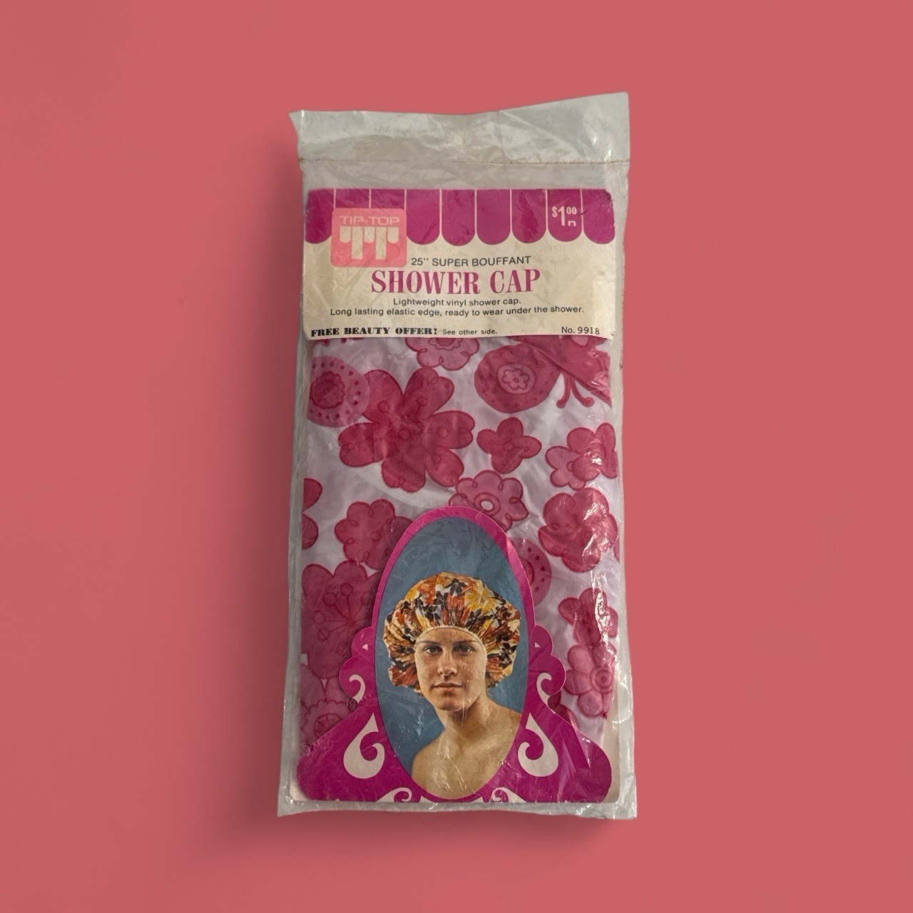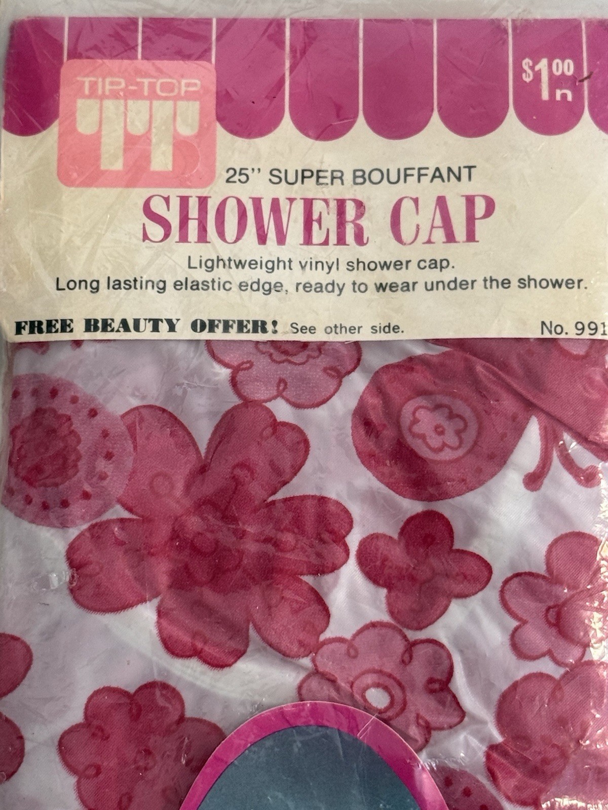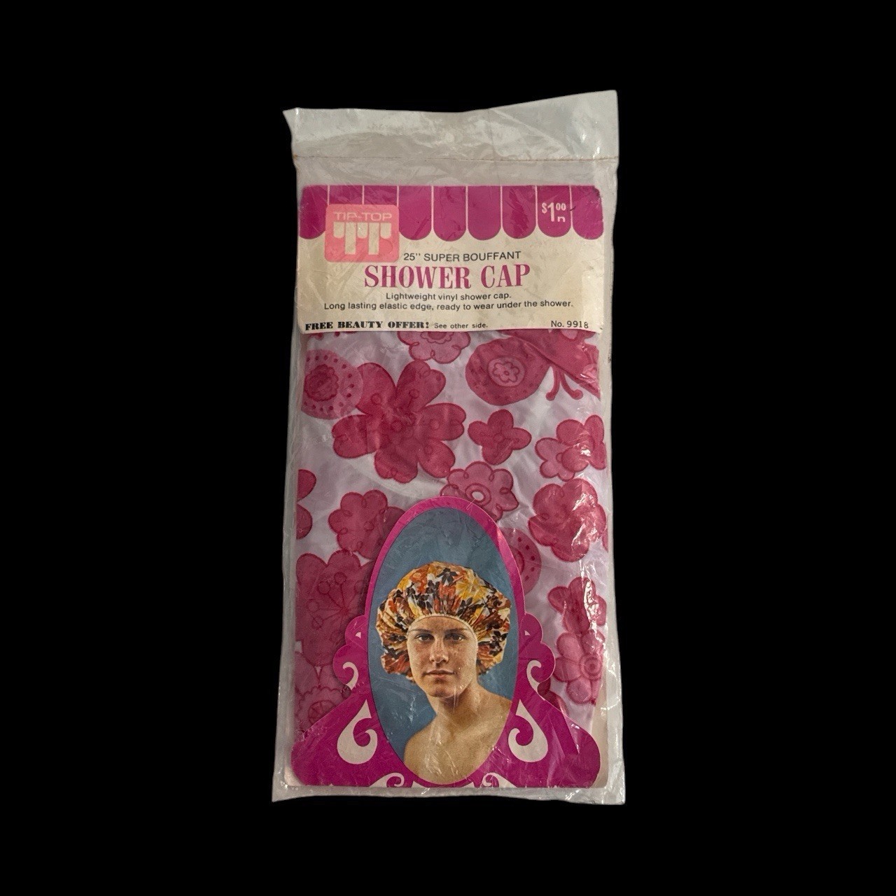 Vintage Super Bouffant 25" Shower Cap Floral Vinyl PINK Sealed Package by Tip Top