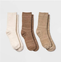 Universal Thread Women's 3 Pack Textured Crew Socks Oatmeal Cream Brown New