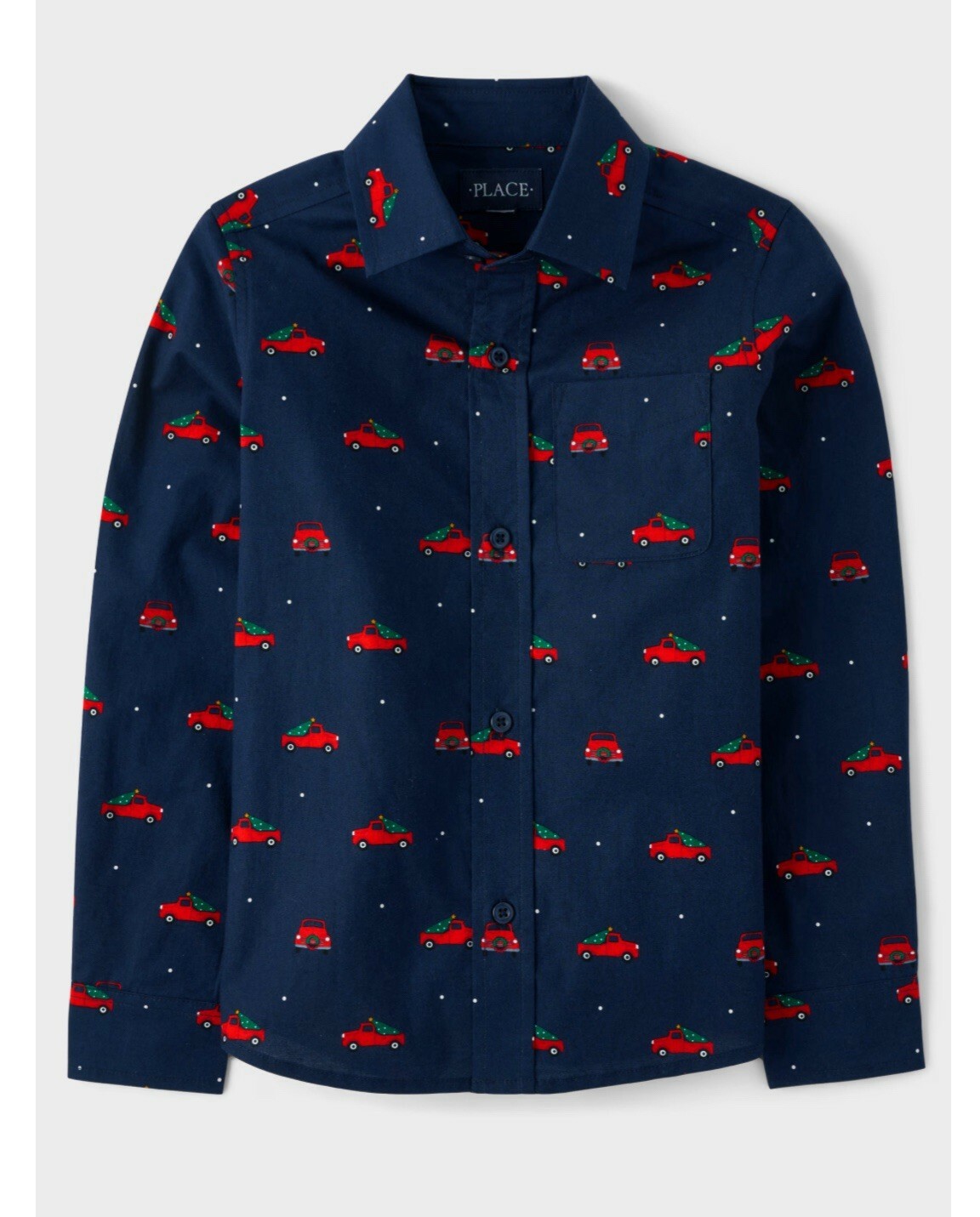 The Childrens Place Long Sleeve Button Down Shirt Christmas Truck Print Boys 2T