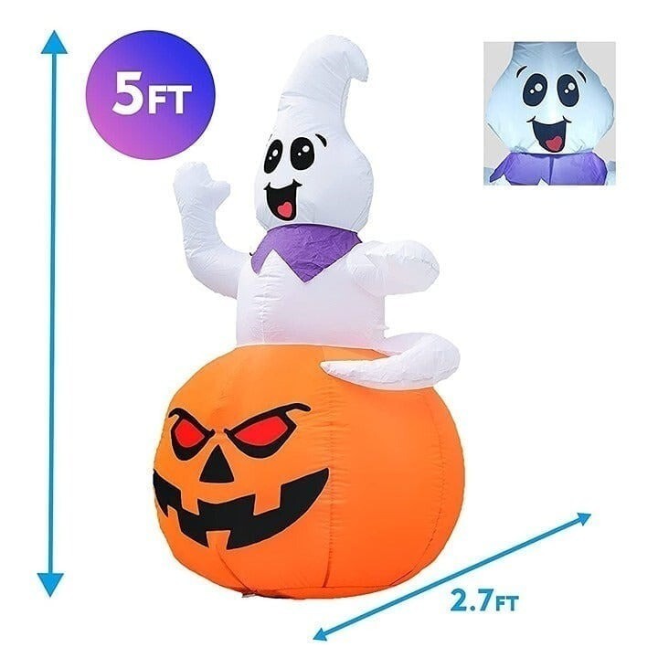 GOOSH Halloween Inflatable 5FT Ghost with Pumpkin Cute Halloween Ghost