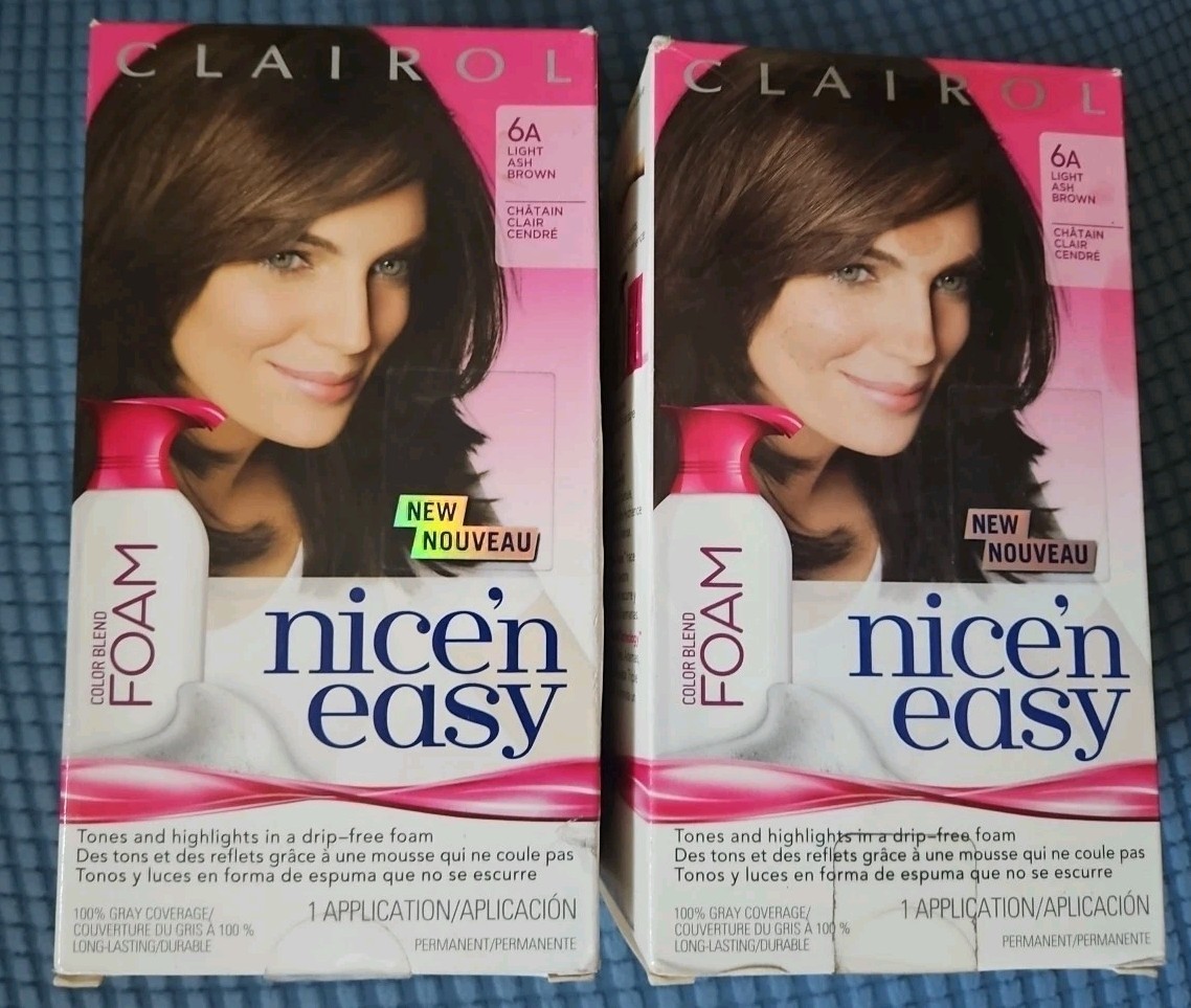 CLAIROL NICE "n EASY COLOR BLEND FOAM 6A Light Ash Brown 2 Boxes