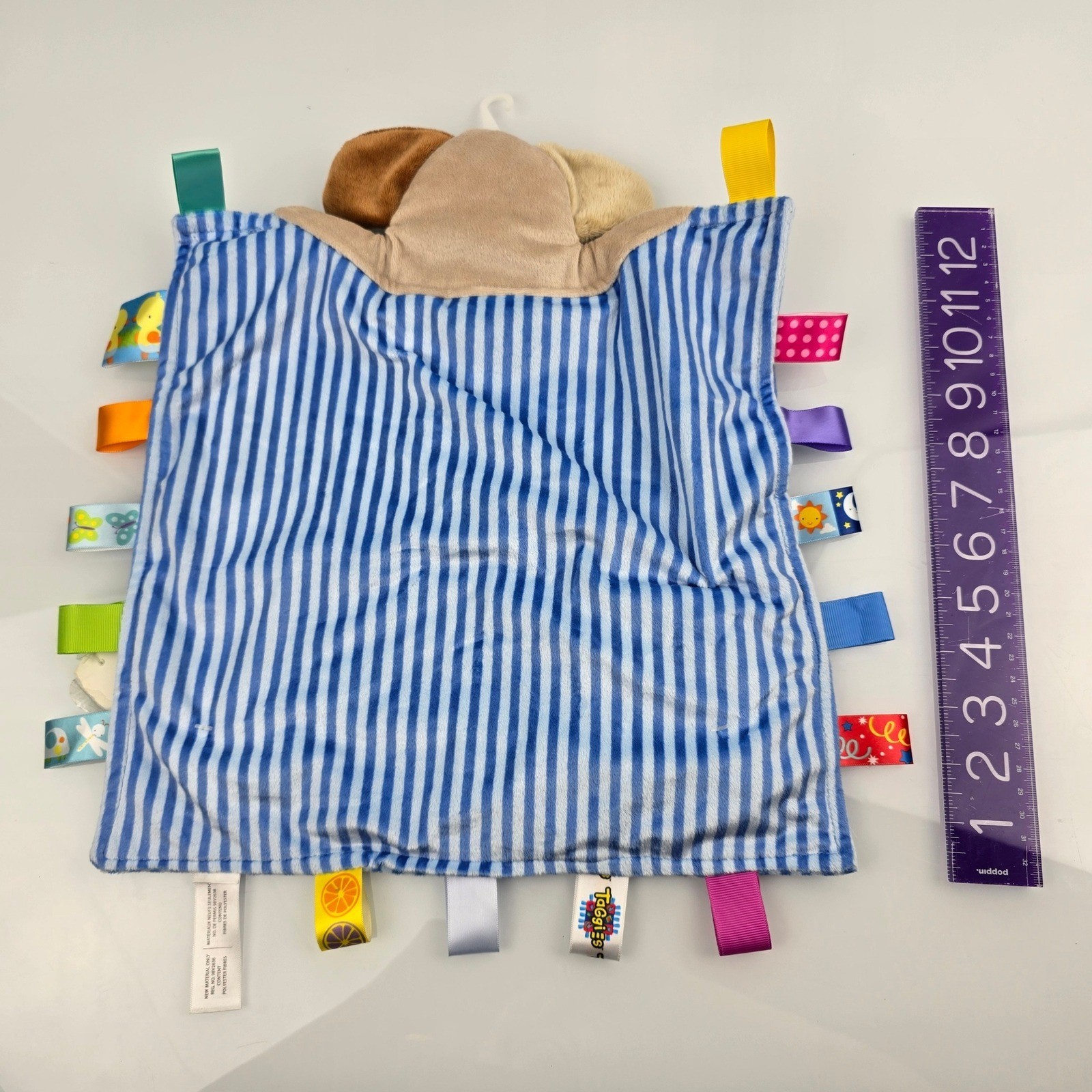 Keywords: Taggies Buddy, Peek A Boo, Dog Blanket, Security Blanket, Lovey, Baby Blanket, Plush Blanket, Striped Blanket, Blue Blanket, Tag Blanket, Sensory Blanket, Comfort Blanket, Baby Toy, Newborn Gift