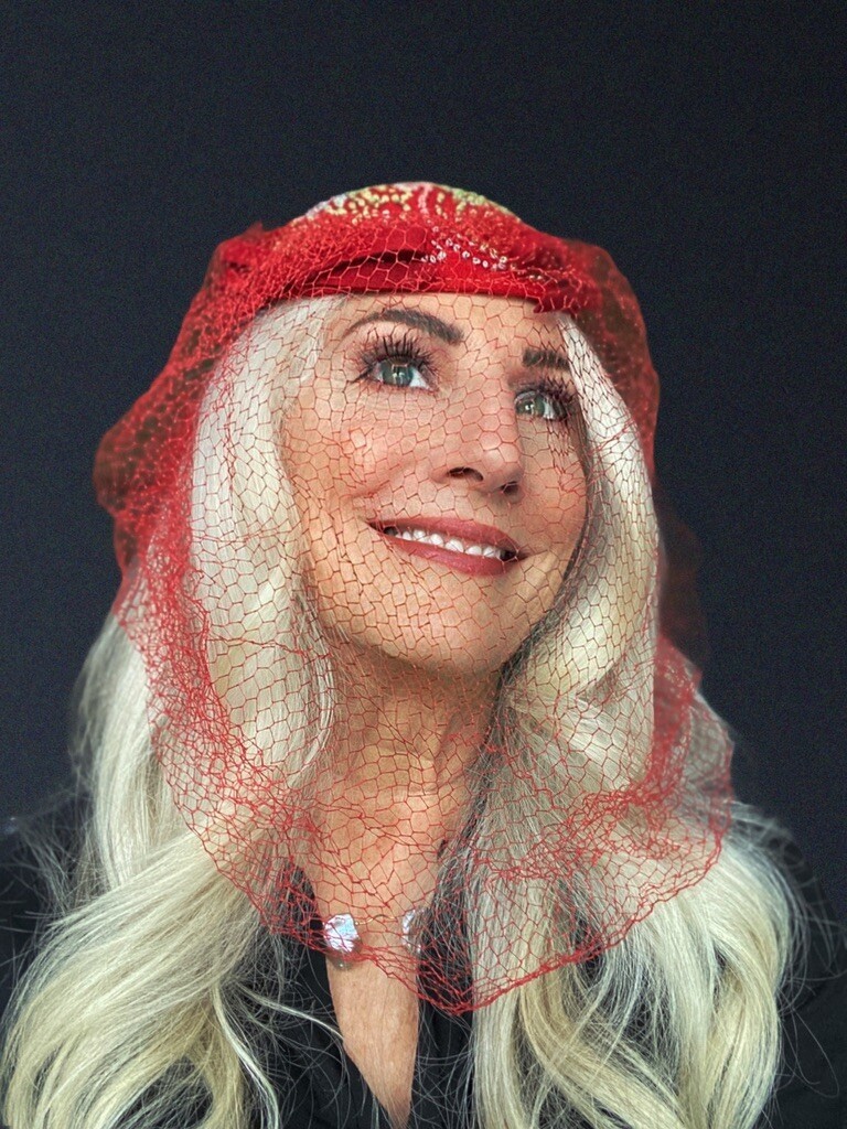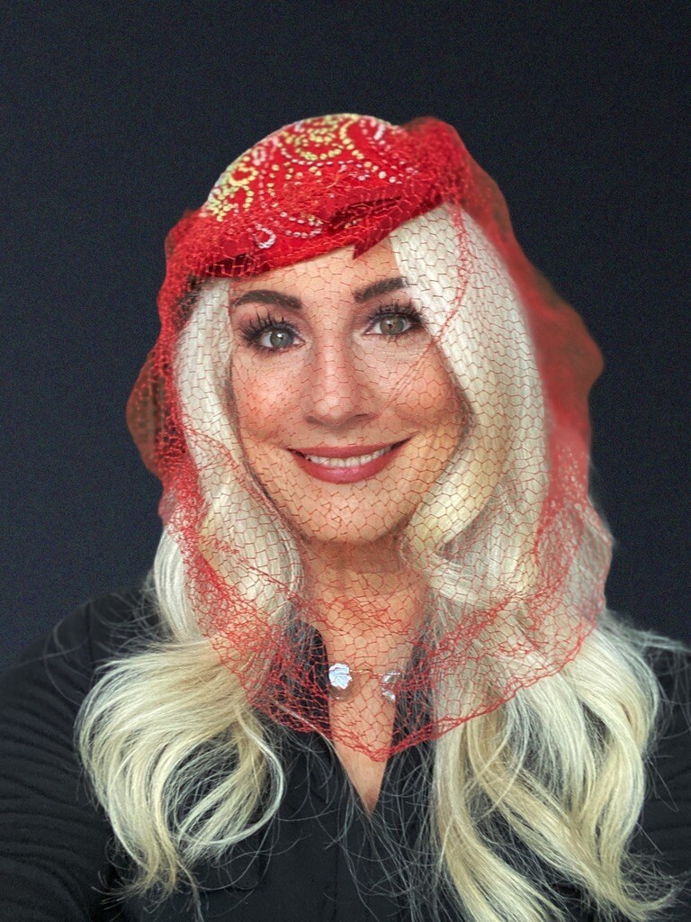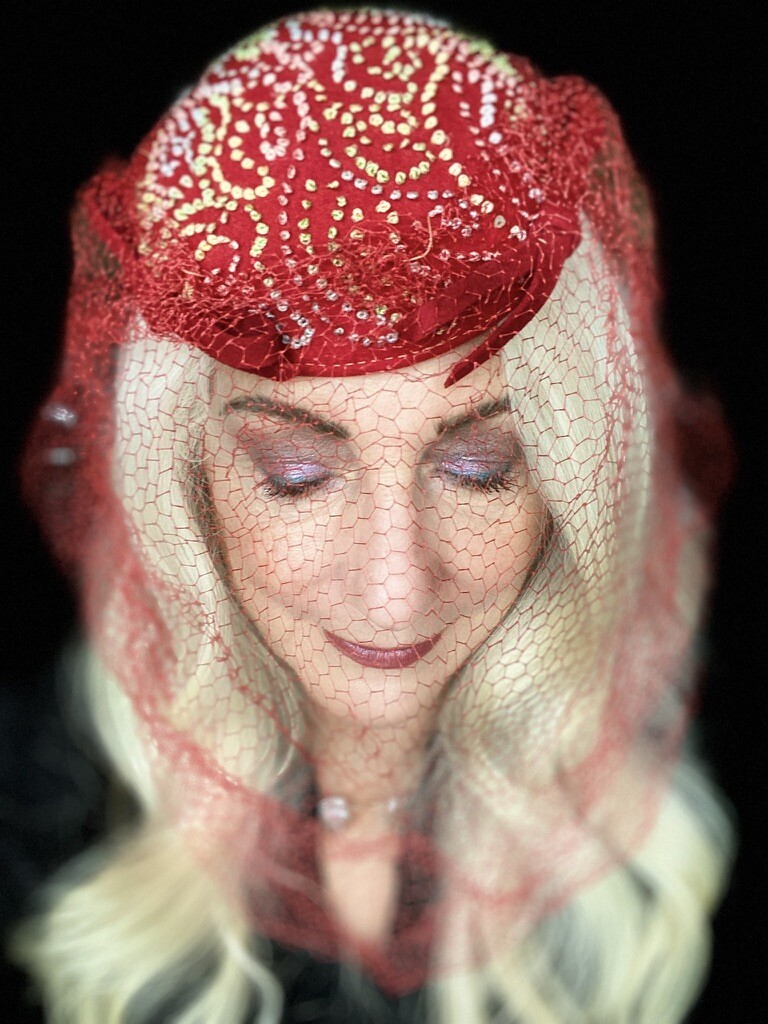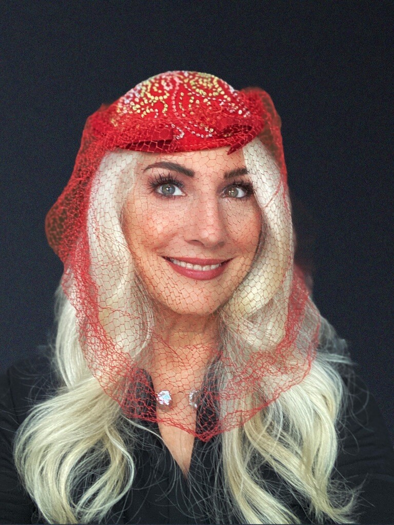 Vtg Retro Womens Hat Red Embroidered Long Red Veil 1940s Fits Any Size