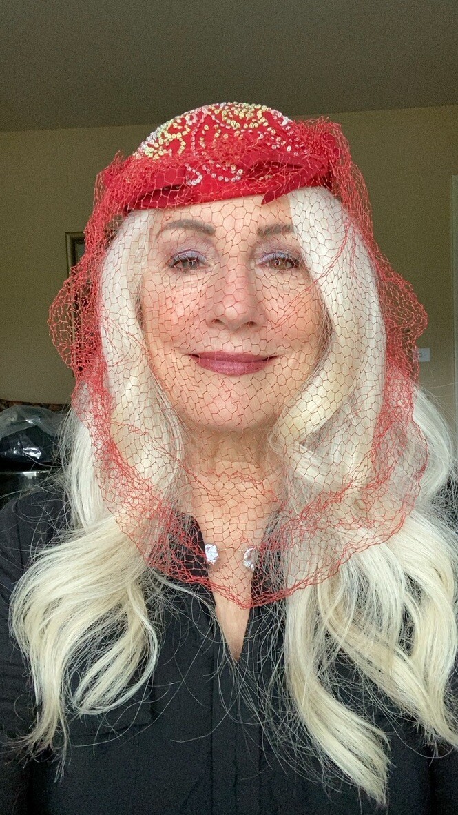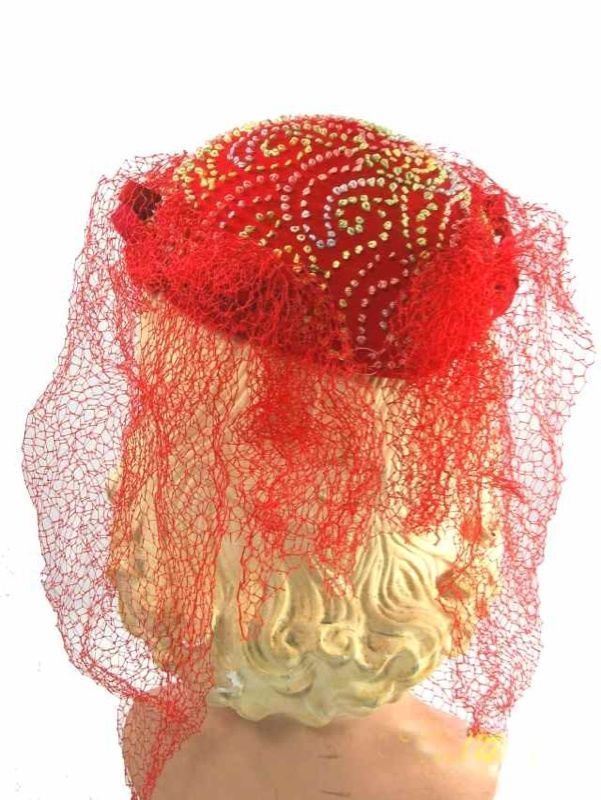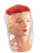 Vtg Retro Womens Hat Red Embroidered  Long Red Veil 1940s Fits Any Size added to cart.