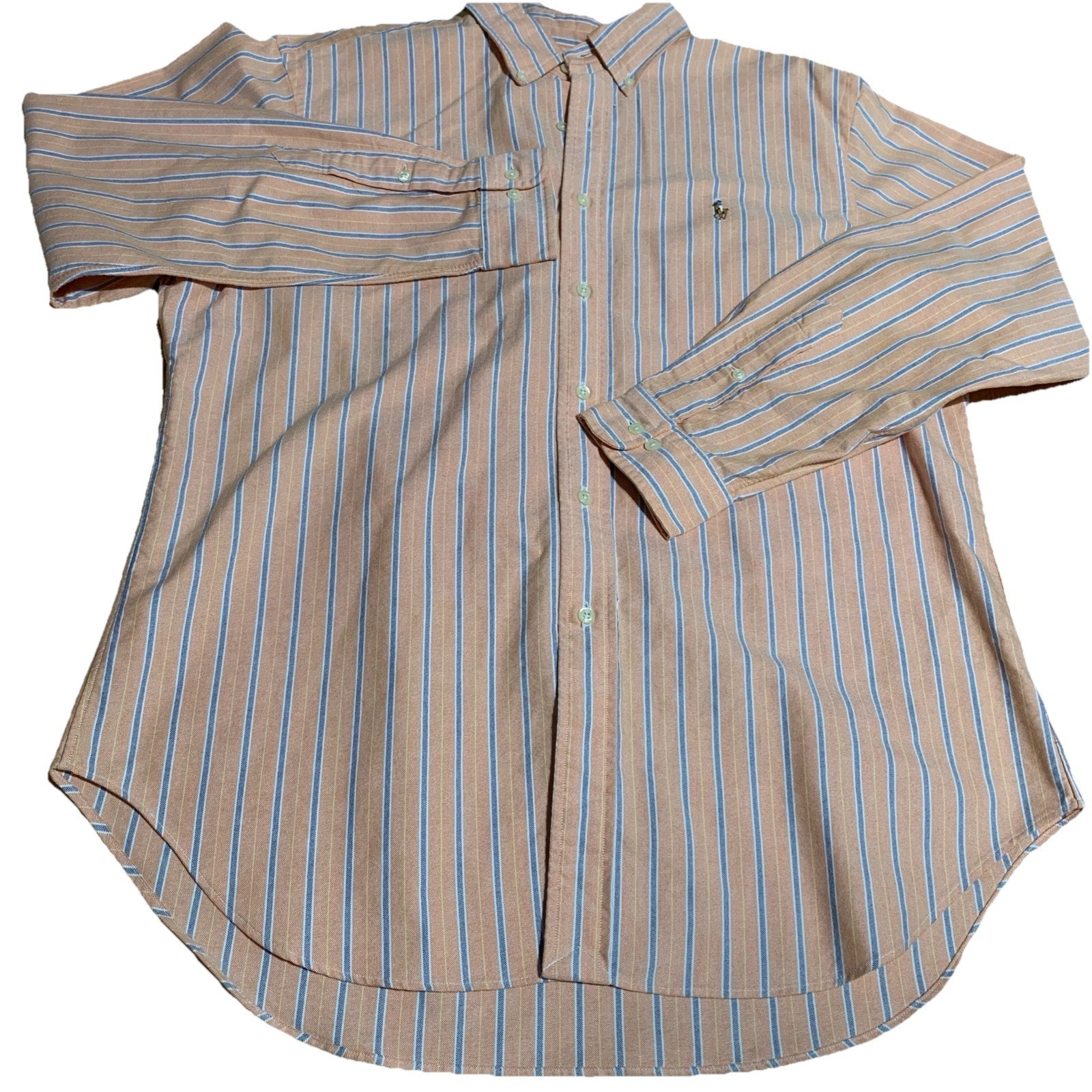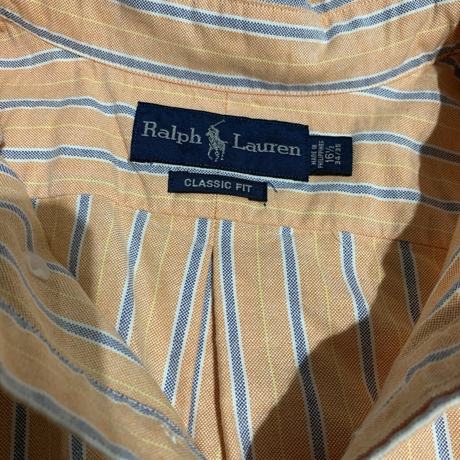 Ralph Lauren Shirt Mens 16.5-34/35 Orange Blue Stripe Classic Fit Flesh Pony