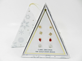 And Now This Cubic Zirconia Crystal Glass 18K Gold Plated Four Pair Earring Set