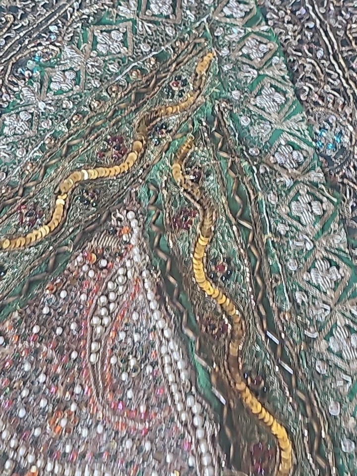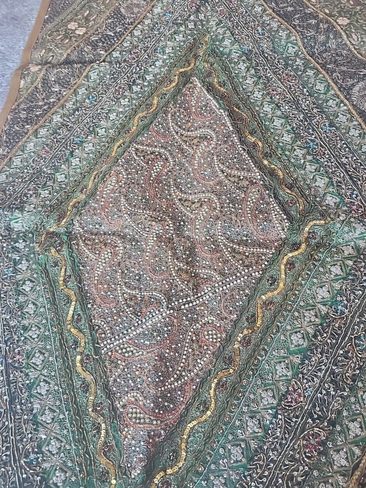 Vintage Indian Hand-Embroidered Zardozi Wall Hanging Tapestry 125x63cm – Rich...
