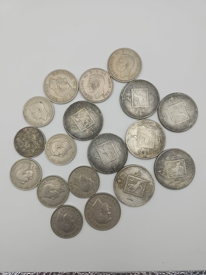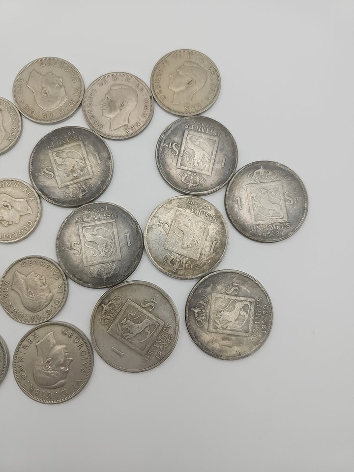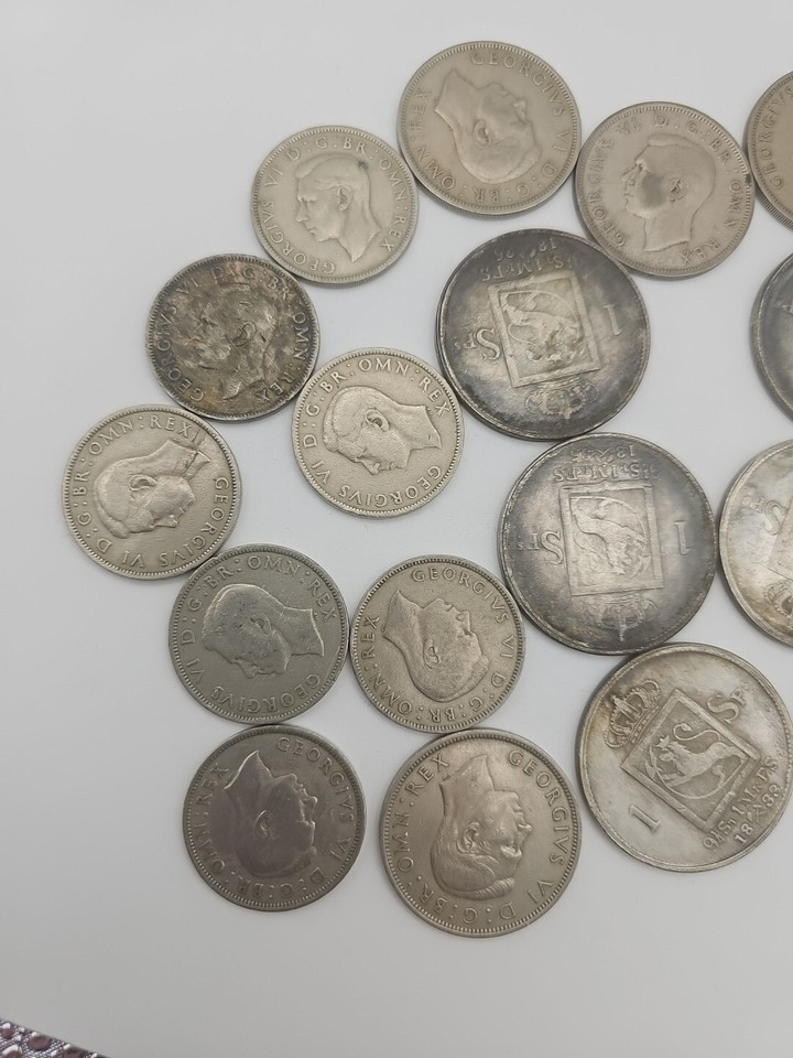 PLUS 11 X BRITISH COINS KING GEORGE VI SHILLING AND HALF CROWN