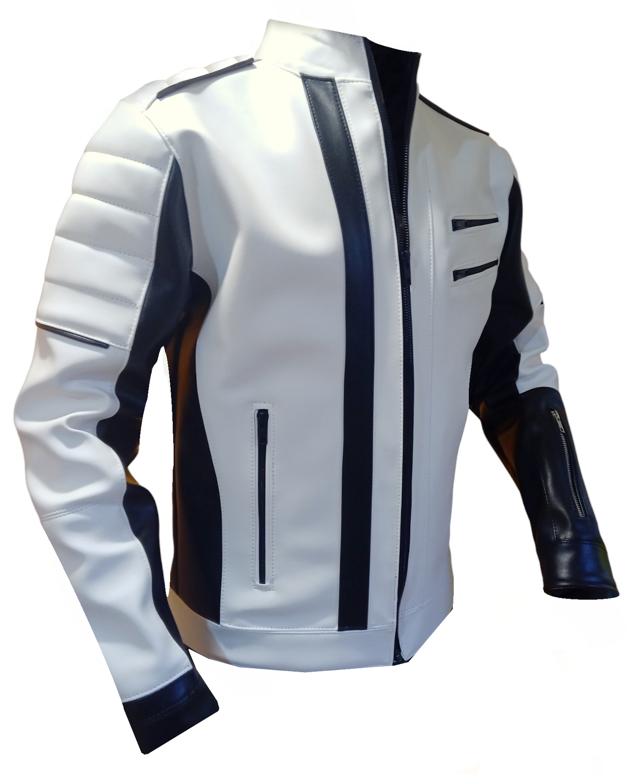 Men's Leather Jacket Faux Handmade Model Dusk White