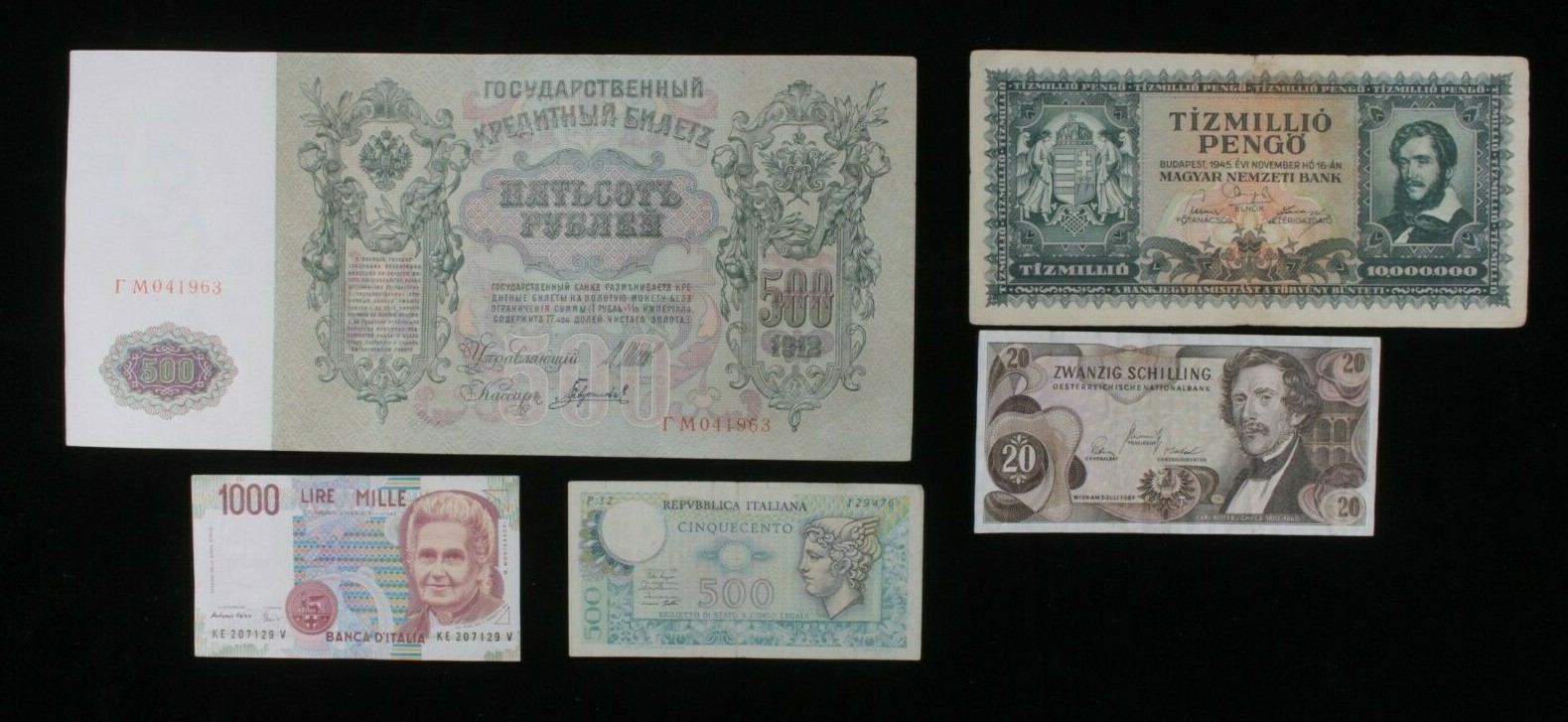 Européenne Nations 5-Notes Lot Autriche Hongrie Italie Russie