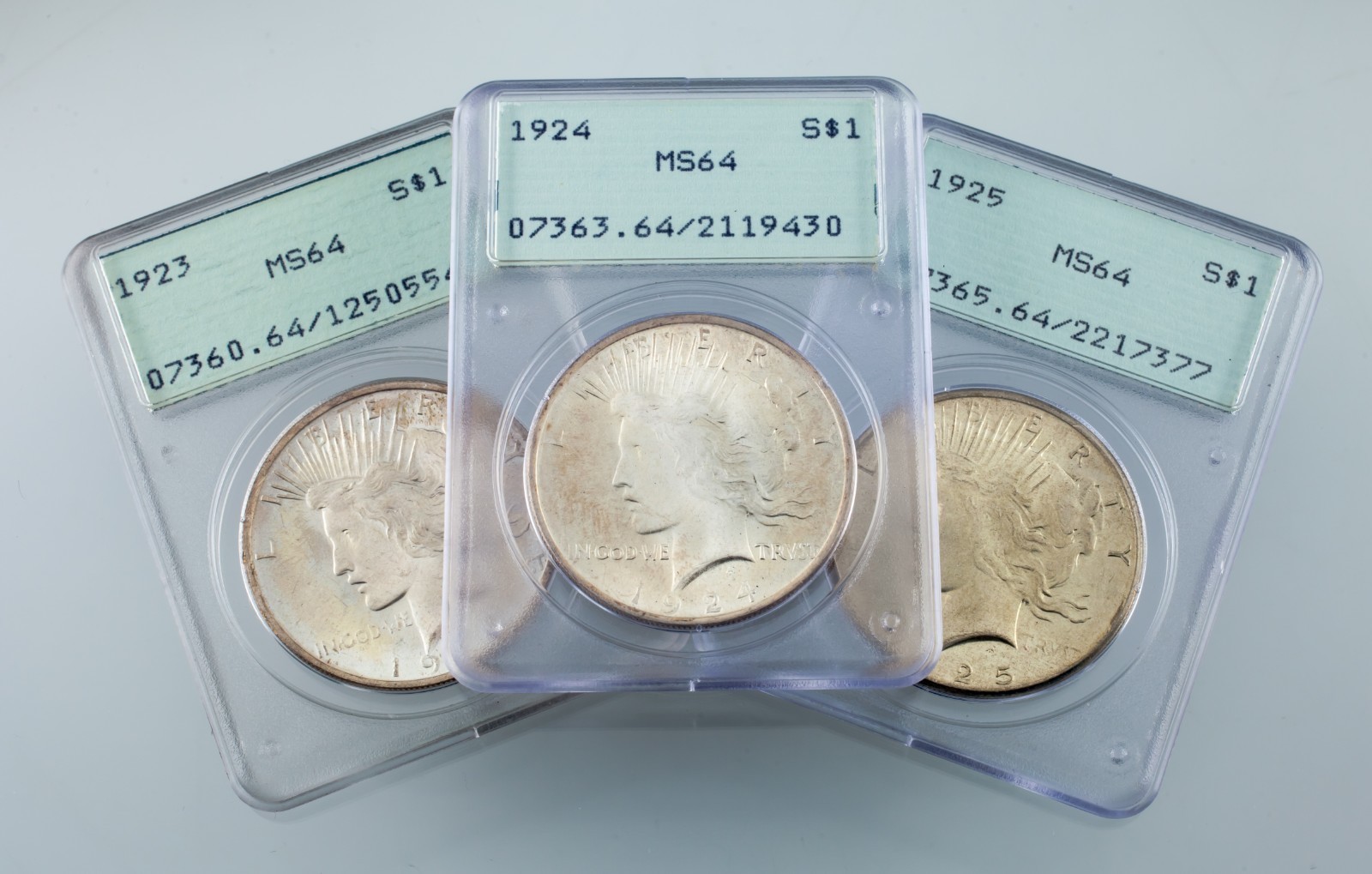 Lot de 3 PCGS Peace Dollars 1923-1925 OGH MS64 GRAND LOT!