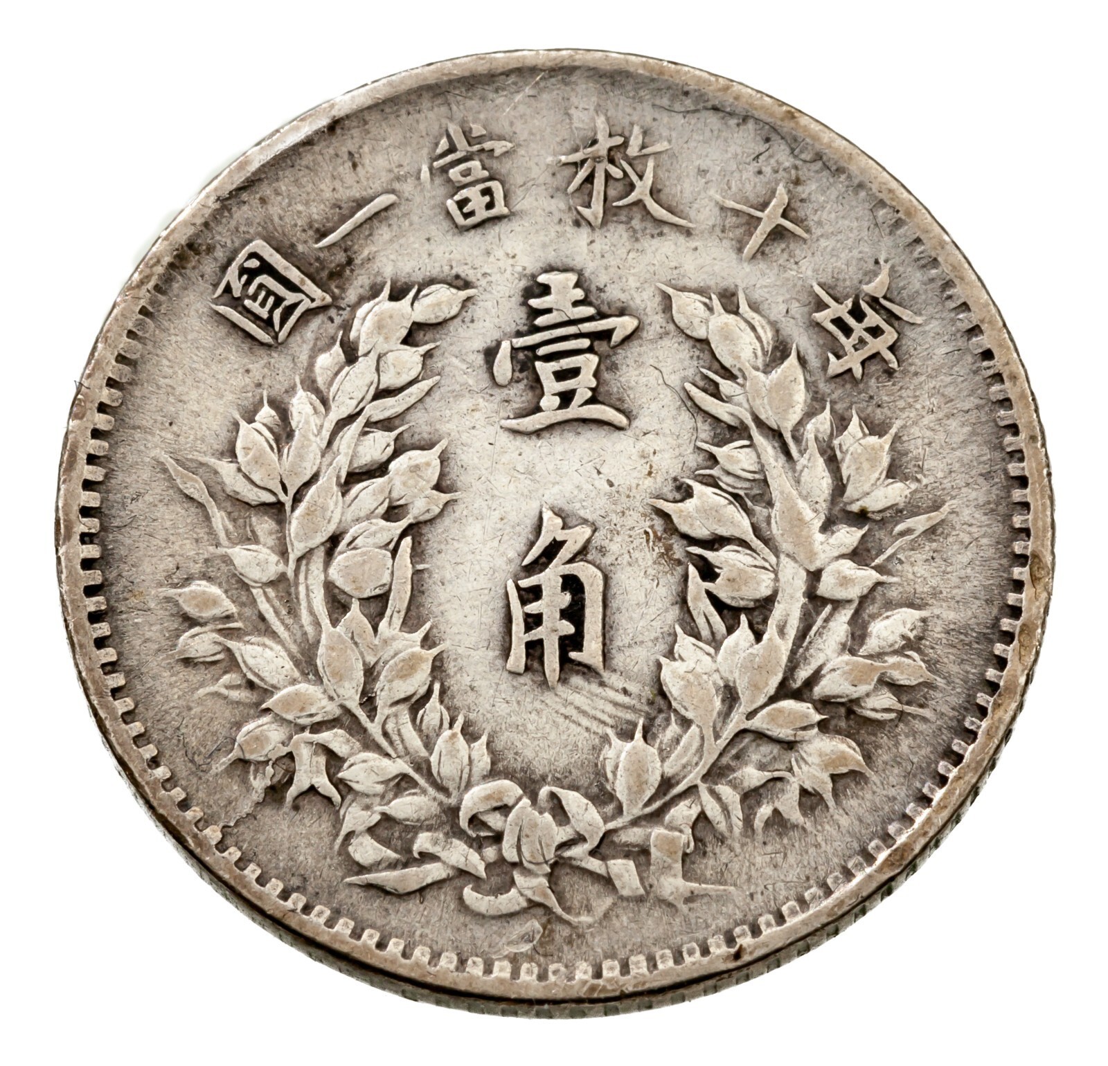 1914 Chine 10 cents Coin en VF Condition "Fat Man" Y # 326, LM-66
