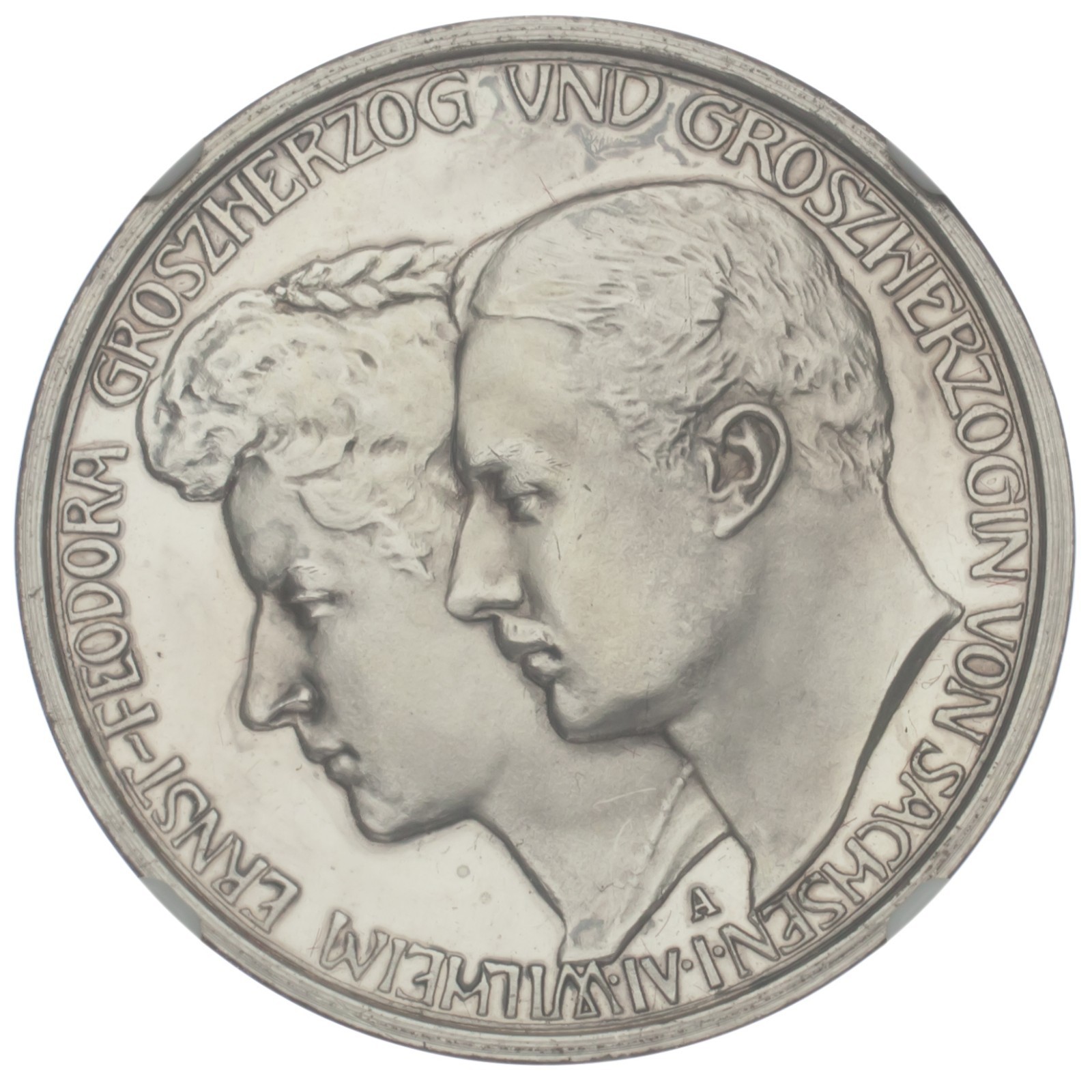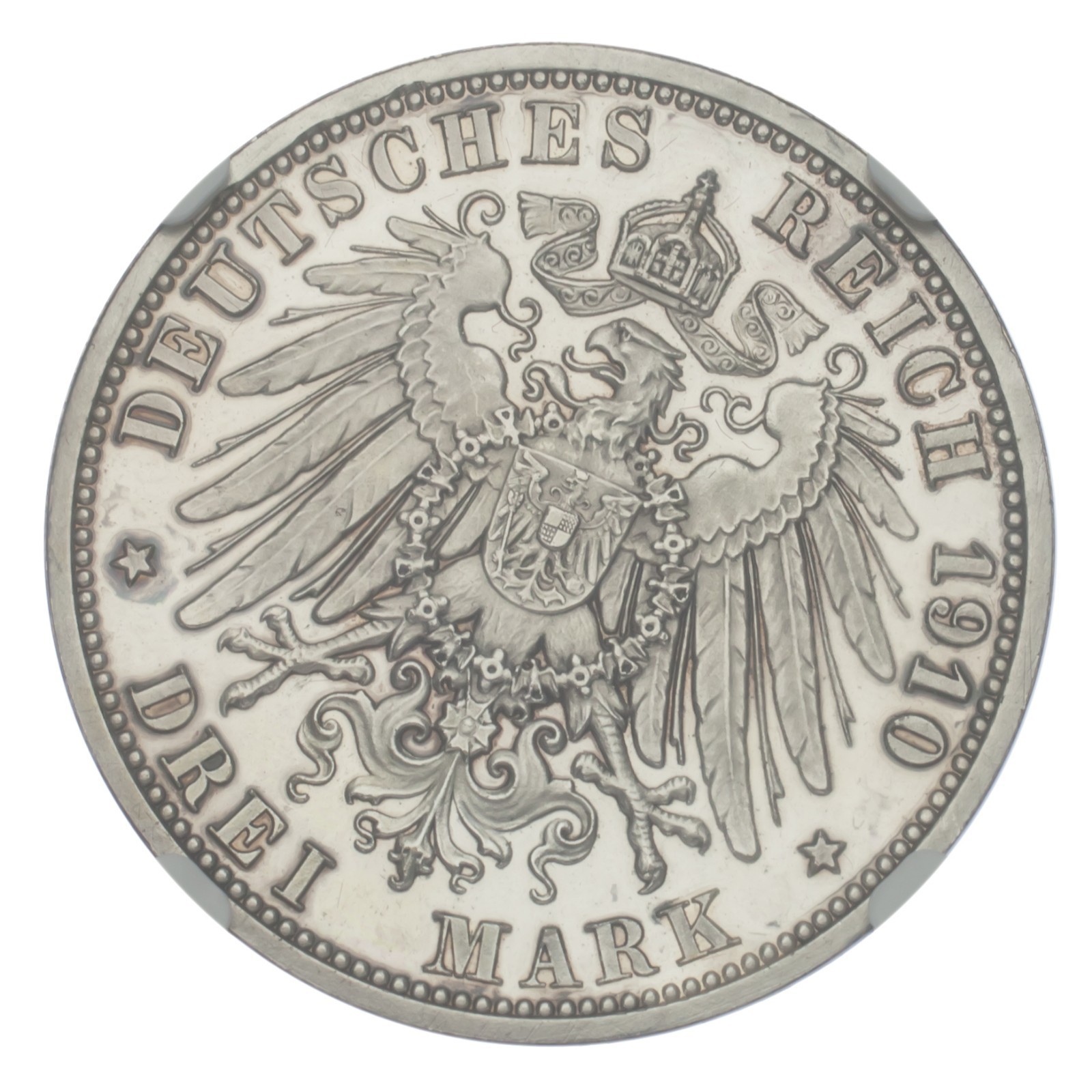 1910 A Allemagne 3 Mark 3m saxe-weimar-eisenach argent ngc classe pf63 camee