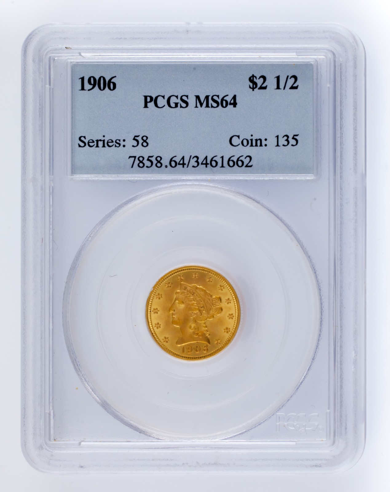 1906 Gold G 2,50 $ Liberty Head classe par PCGS comme MS64! Magnifique aigle quart!
