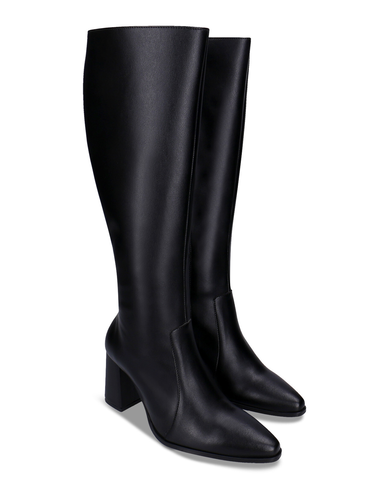 High Heels Damen Stiefel Knie Schaft aus Schwarz Apple Skin mit Spitze Elegant