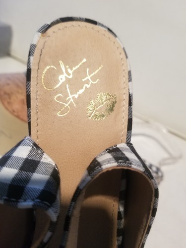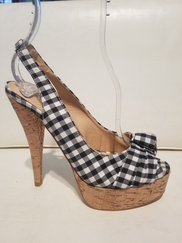 The Colin Stuart Gingham Platform Cork Heel is a vintage-inspired pinup rockabilly shoe perfect for those who love 50s and 80s style. With an ultra-high stiletto heel and a unique gingham pattern, this platform heel is ideal for weddings, parties, or casual wear. The slip-on design, almond toe shape, and leather lining make it both stylish and comfortable for all-day wear. Whether you're looking for a sleek black heel for the spring, summer, winter, or fall, this Colin Stuart shoe is a must-have for your wardrobe. Heel is 5 1/2 inches. bOx1 I use recycled materials for packaging whenever possible. Please ask questions as all sales are final.