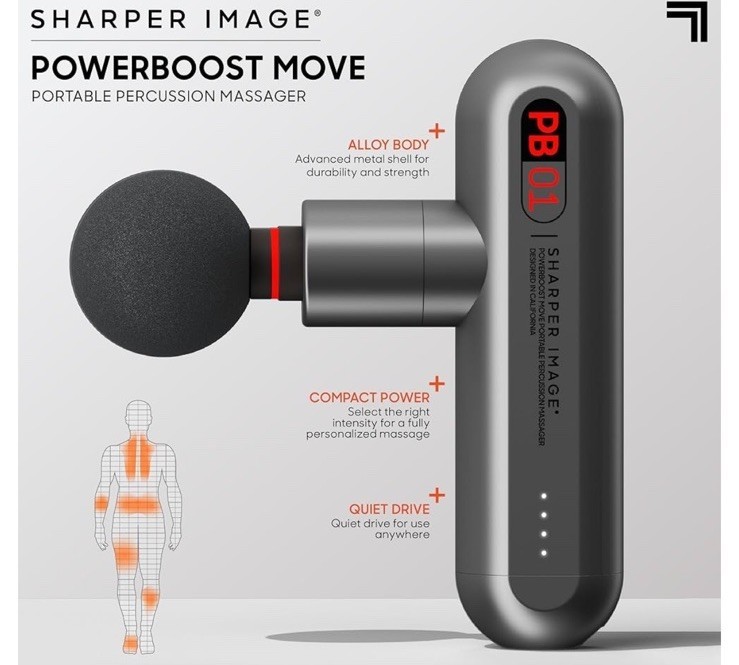 Sharper Image Percussion Massage Gun, Powerboost Move, Lightweight Portable....