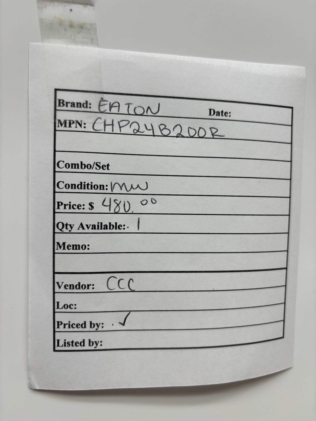 Eaton CHP24B200R Plug On Neutral Design Cutler-Hammer Series 200 AMP New - Same Day Ship The Eaton CHP24B200R is a 200 AMP main breaker loadcenter from the Cutler-Hammer Plug-On Neutral series. It features 24 circuit spaces and supports up to 48 circuits with tandem breakers, making it ideal for medium to large residential setups. The Plug-On Neutral design allows for quicker and cleaner installations by eliminating the need for individual neutral pigtails. Listed by: Richard (Sales Team) ?our journey that lies ahead becomes impossible if we never begin? -RRW (A positive moment brought to you by Help Resale) About Us Welcome to Help Resale, your go-to consignment shop where value meets quality. At Help Resale, we're dedicated to providing you with an exceptional shopping experience, whether you're looking to find the best deals or consign your items. Need to buy a product, but don't see it in our store? Please feel free to reach out to us and we will help you find it! Help Resale 7200 Fair Oaks Blvd Suite 120 Carmichael CA 95608 Business Hours: Monday-Friday: 9:00 am to 5:00 pm (PST) All product and company names are trademarks TM or registered trademarks of their respective holders. Use of them does not imply any affiliation with or endorsement by them.