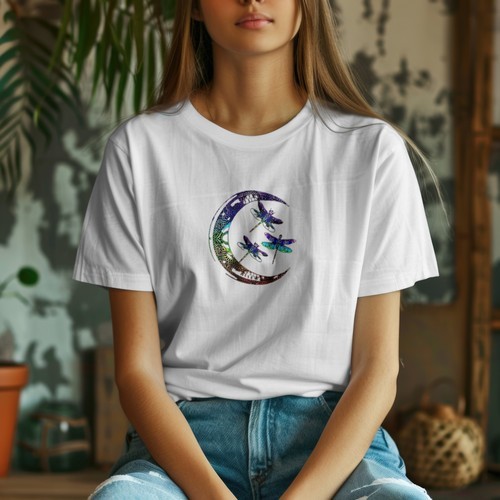 Mystic Moon Dragonflies T-Shirt ? Celestial Glow Fantasy Tee