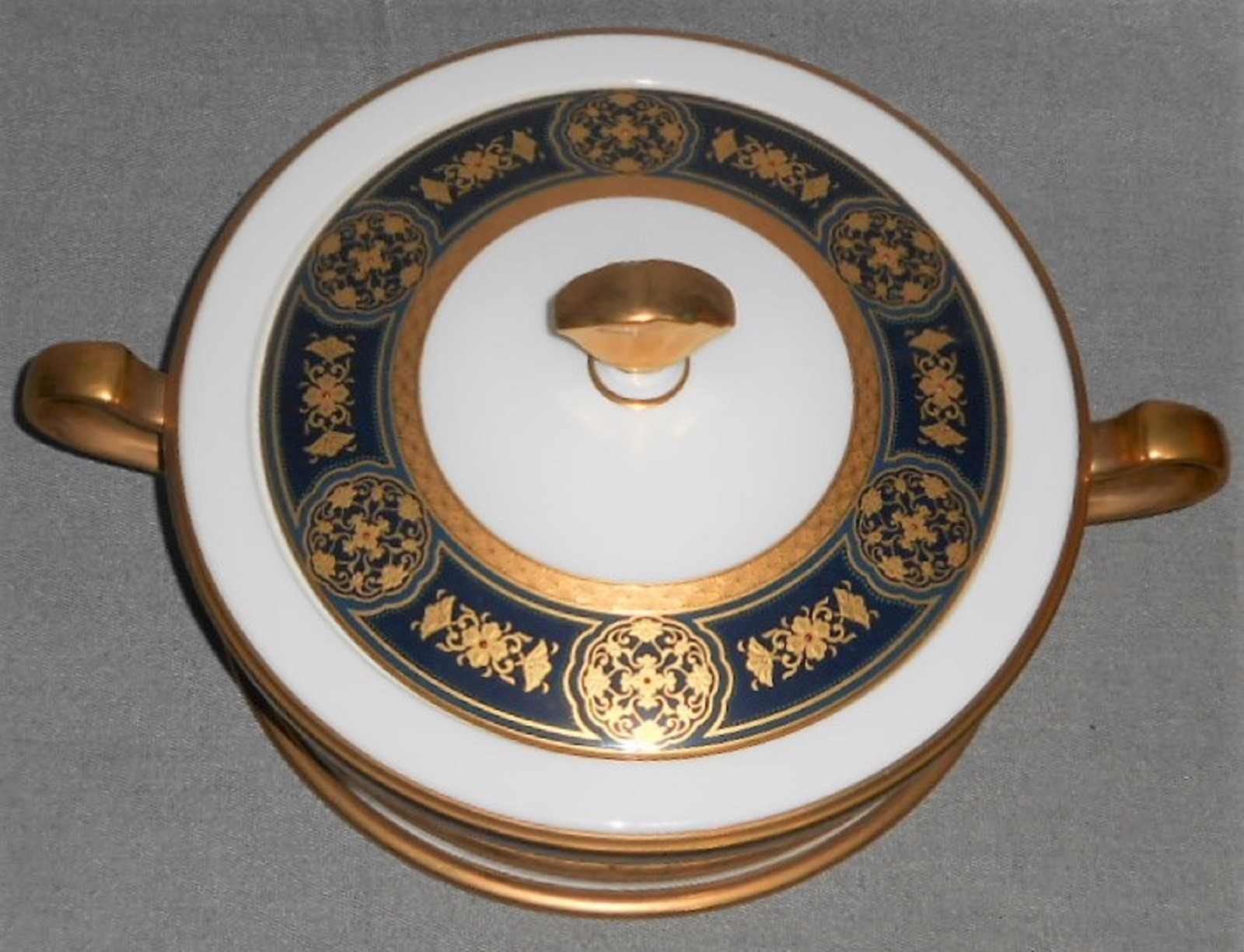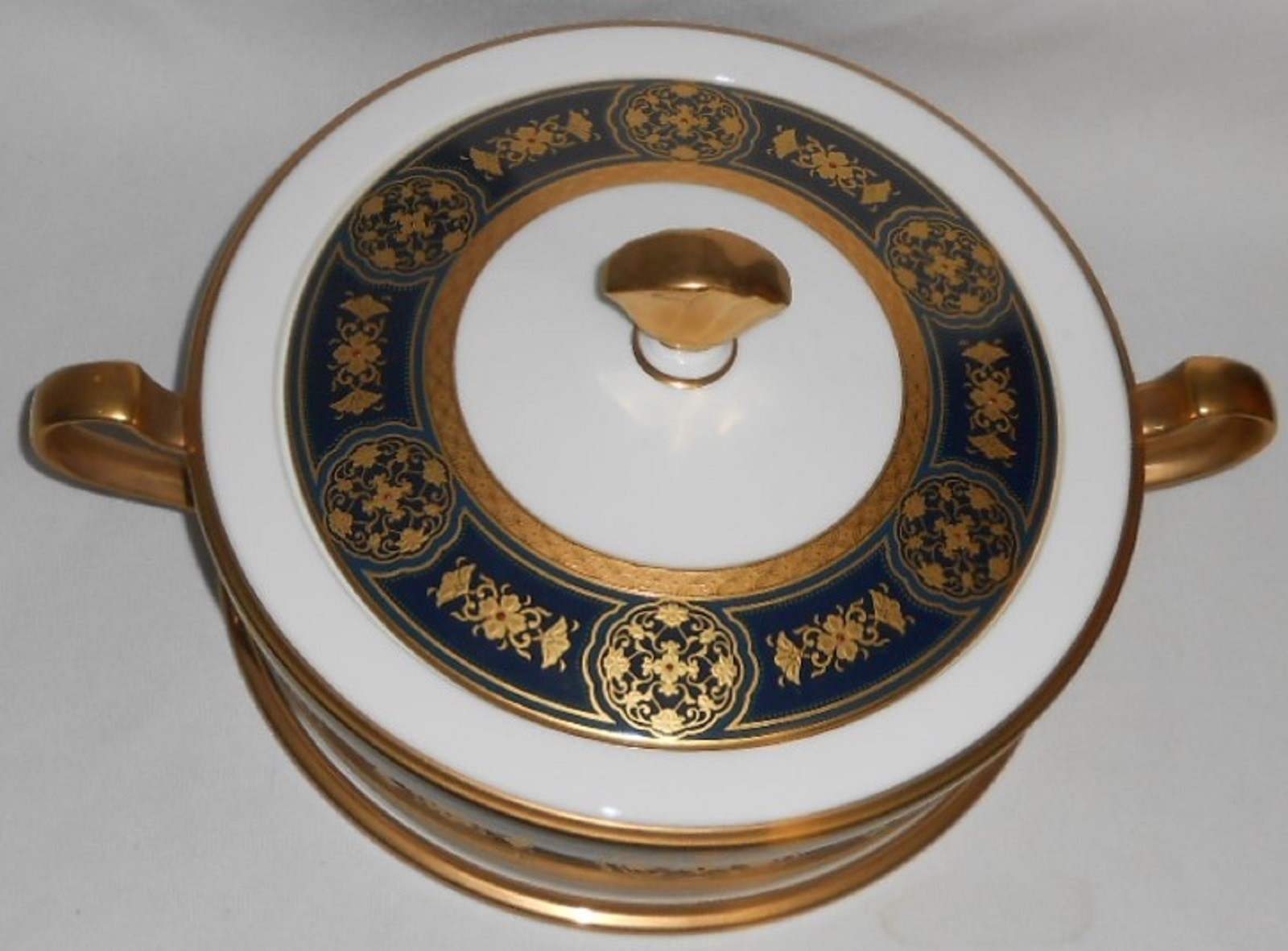 This is the Two Quart Covered Casserole from Noritake Bone China in the Imperial Crest Pattern. This is a beautiful pattern with gold encrusted design and trim - also has some red enameling in design. It measures approx. 9" across x 2 3/4" tall and it is in great pre-owned condition with no chips or cracks or damage of any kind.