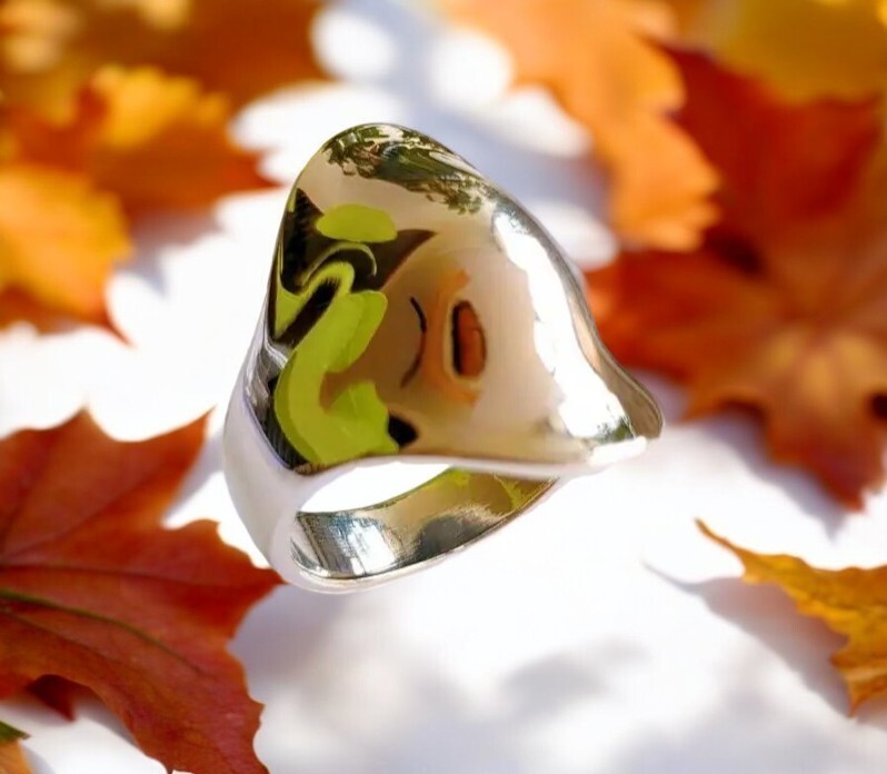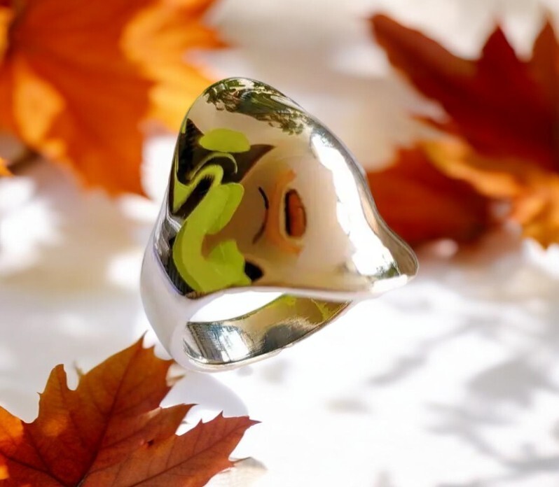 The ring, a size 8, features a silver-plated finish that provides a gleaming touch to its intricate details. Its versatile silver color ensures it pairs effortlessly with a wide range of outfits, making it an essential addition to your jewelry collection for those who appreciate a blend of contemporary style and artisanal craftsmanship.