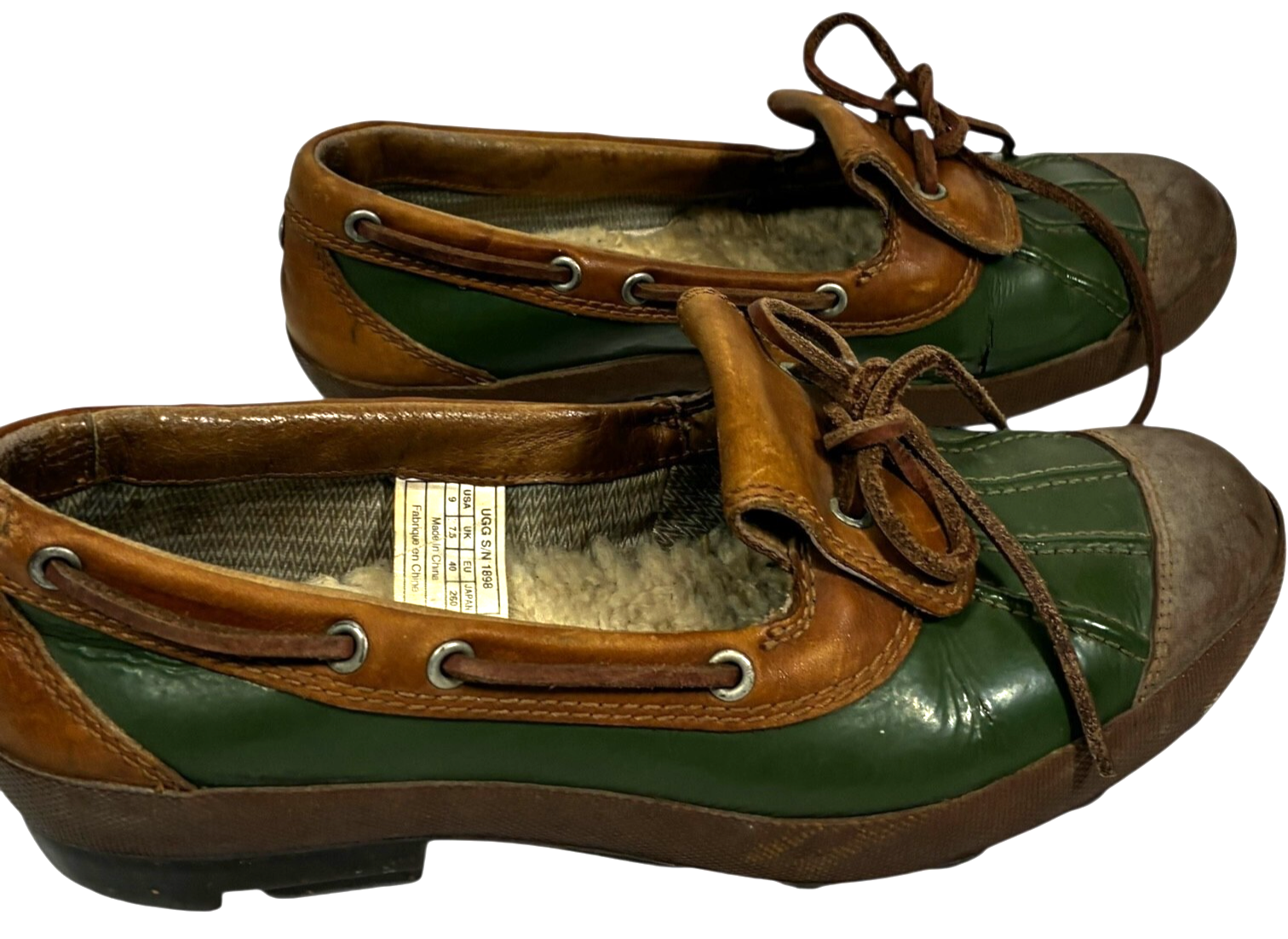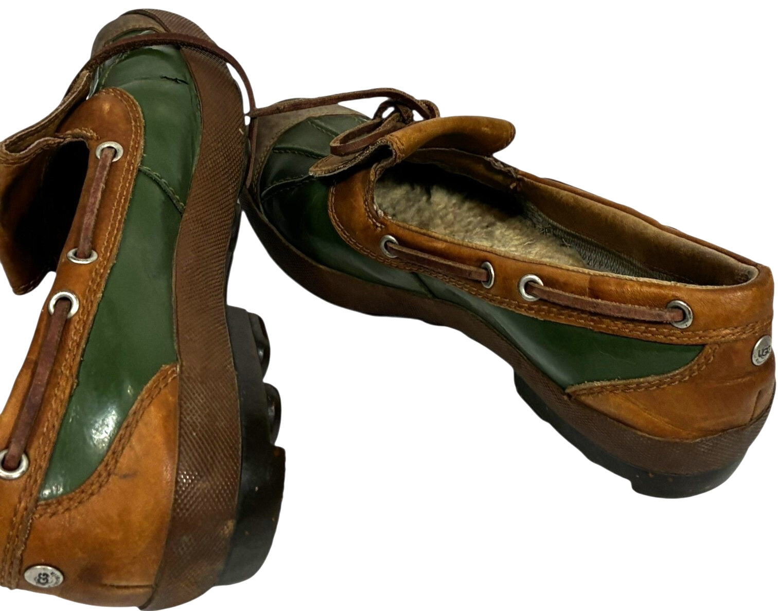 UGG Australia women's Ashdale Green/Brown Leather Duck Shoes 1898 size 9