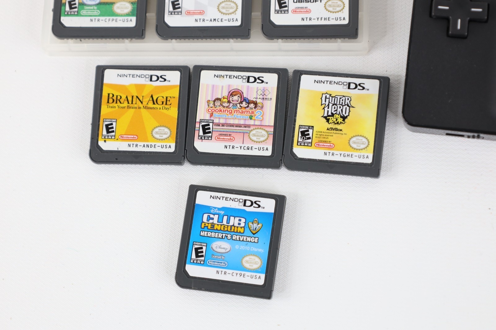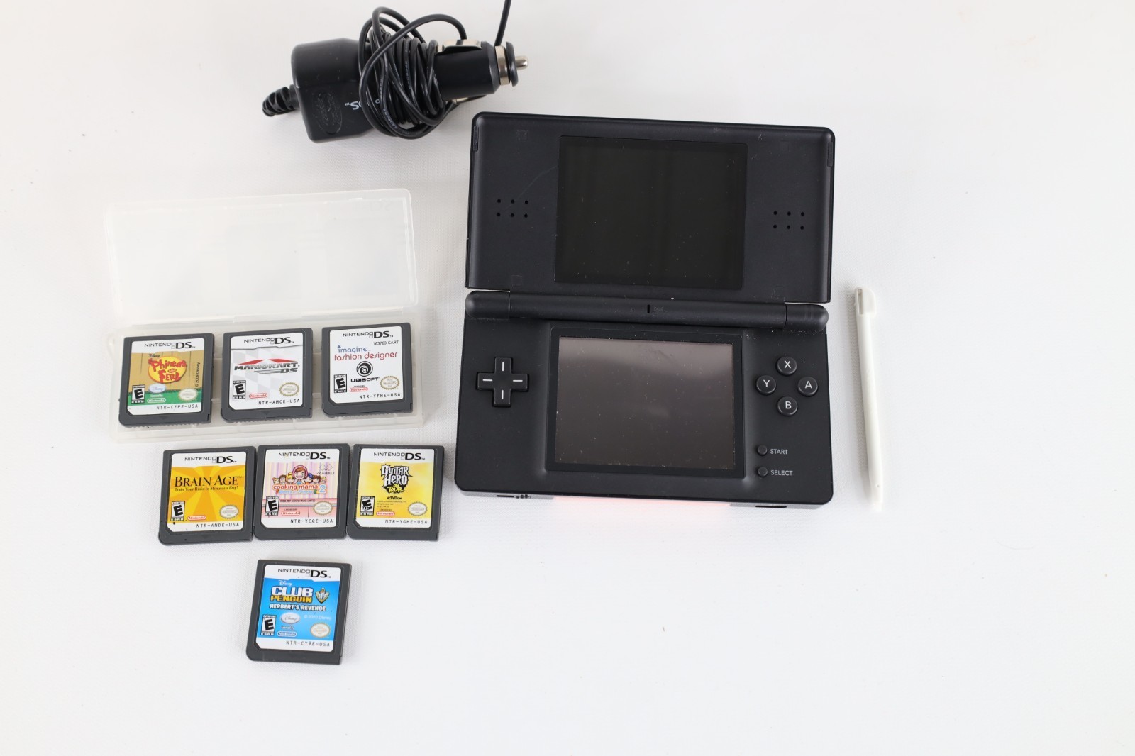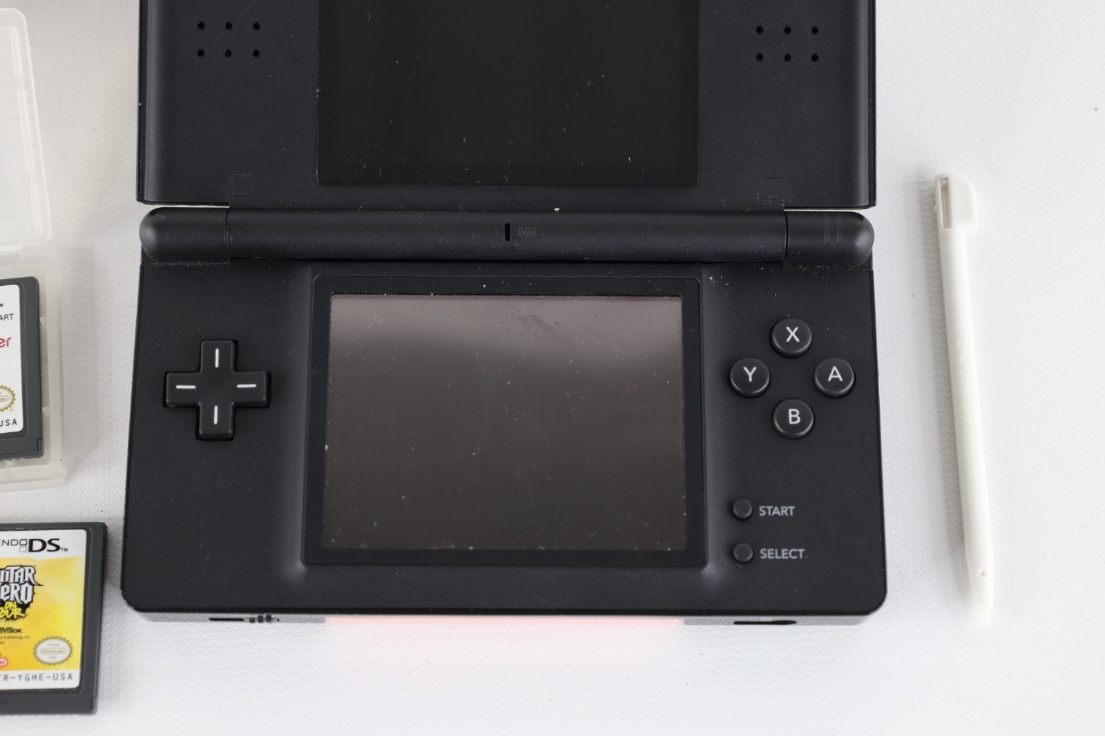 Nintendo DS Lite Video Game System 7 Games Car Charger Mario Kart Guitar Hero