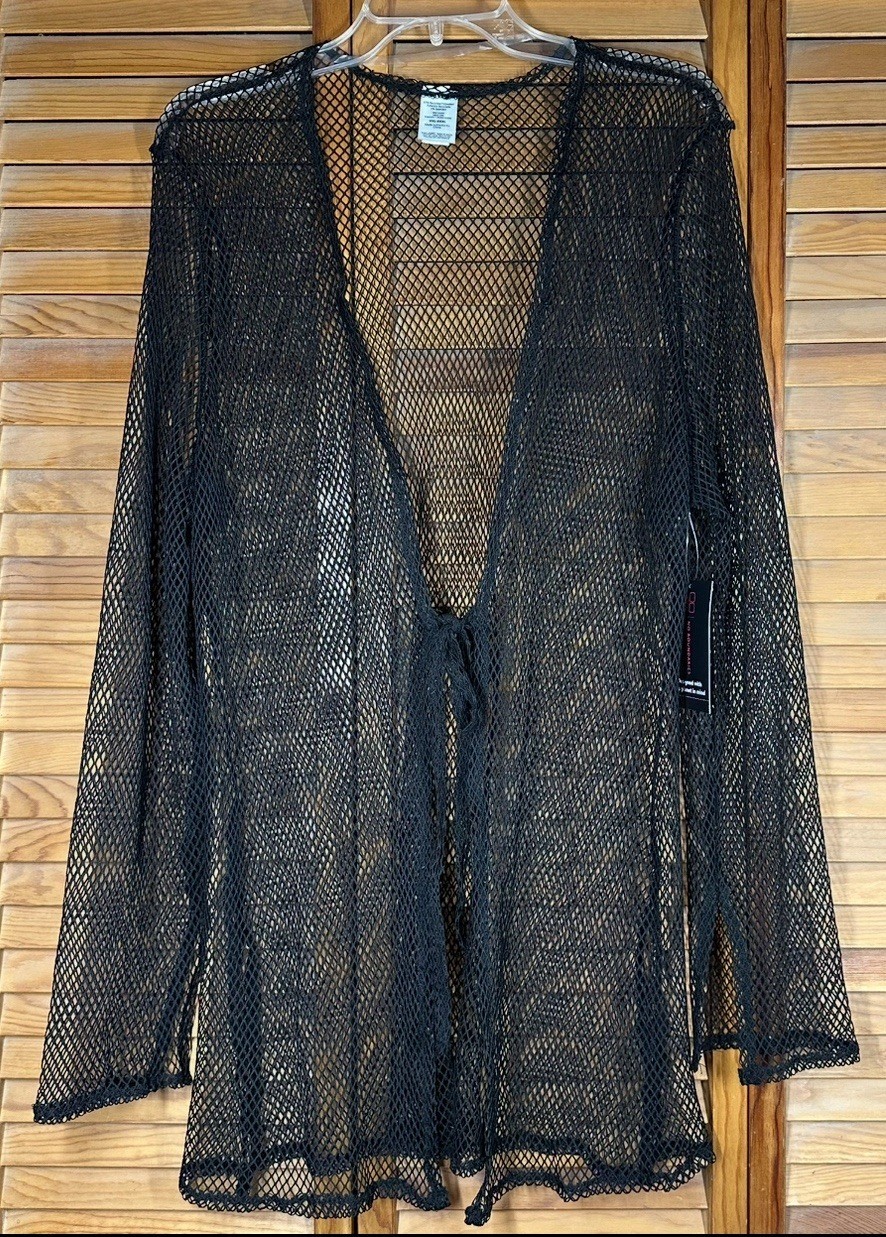 No Boundaries Womens Black Tie Front Side Slit Mesh Swim Cover Up Sz XXL-XXXL