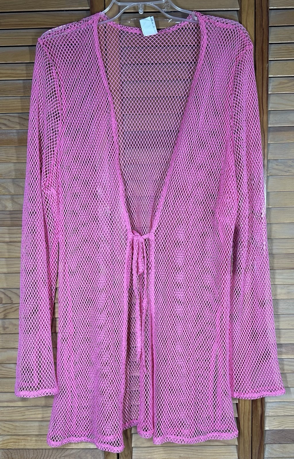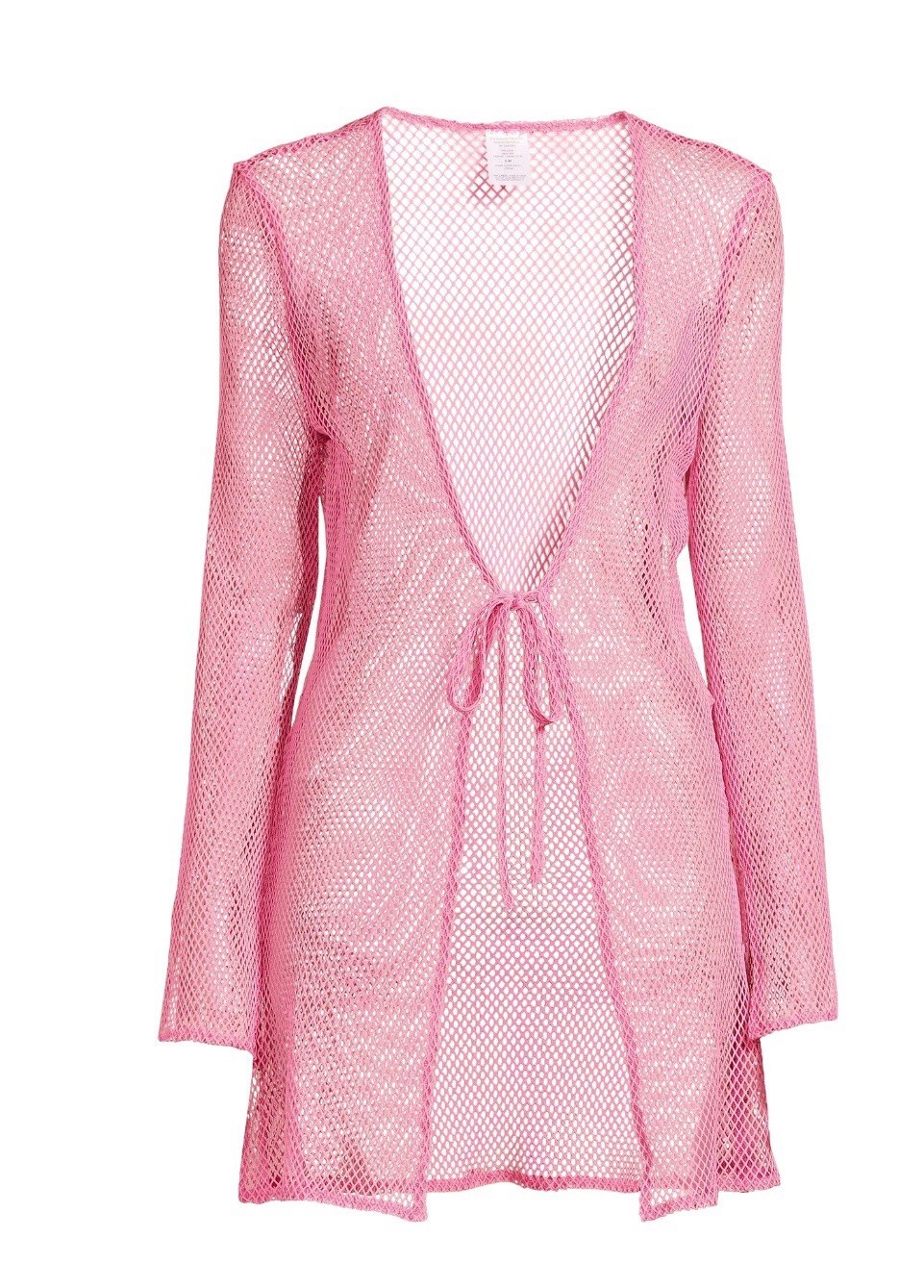 No Boundaries Women's Pink Tie Front Side Slit Mesh Long Sleeve Swim Cover Up