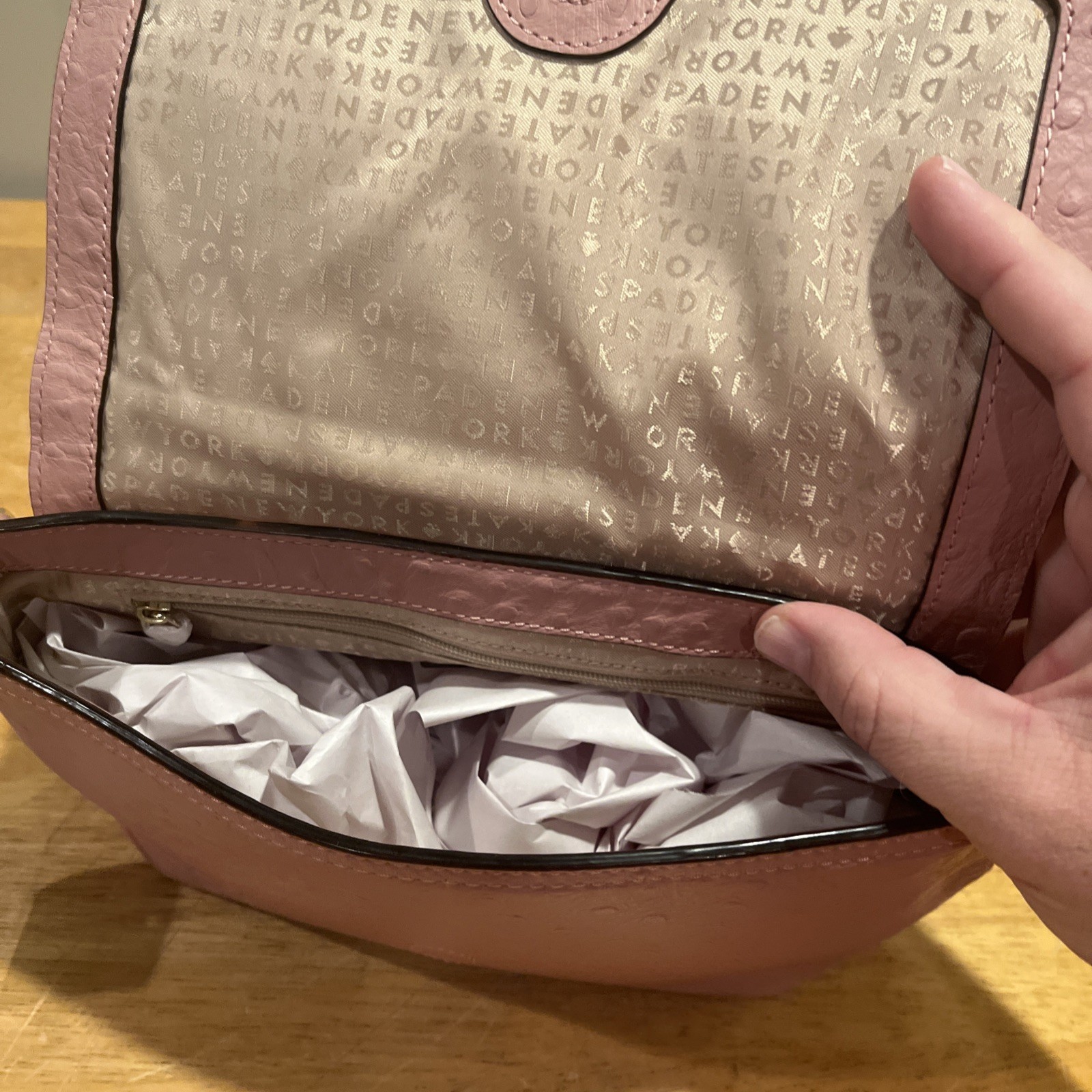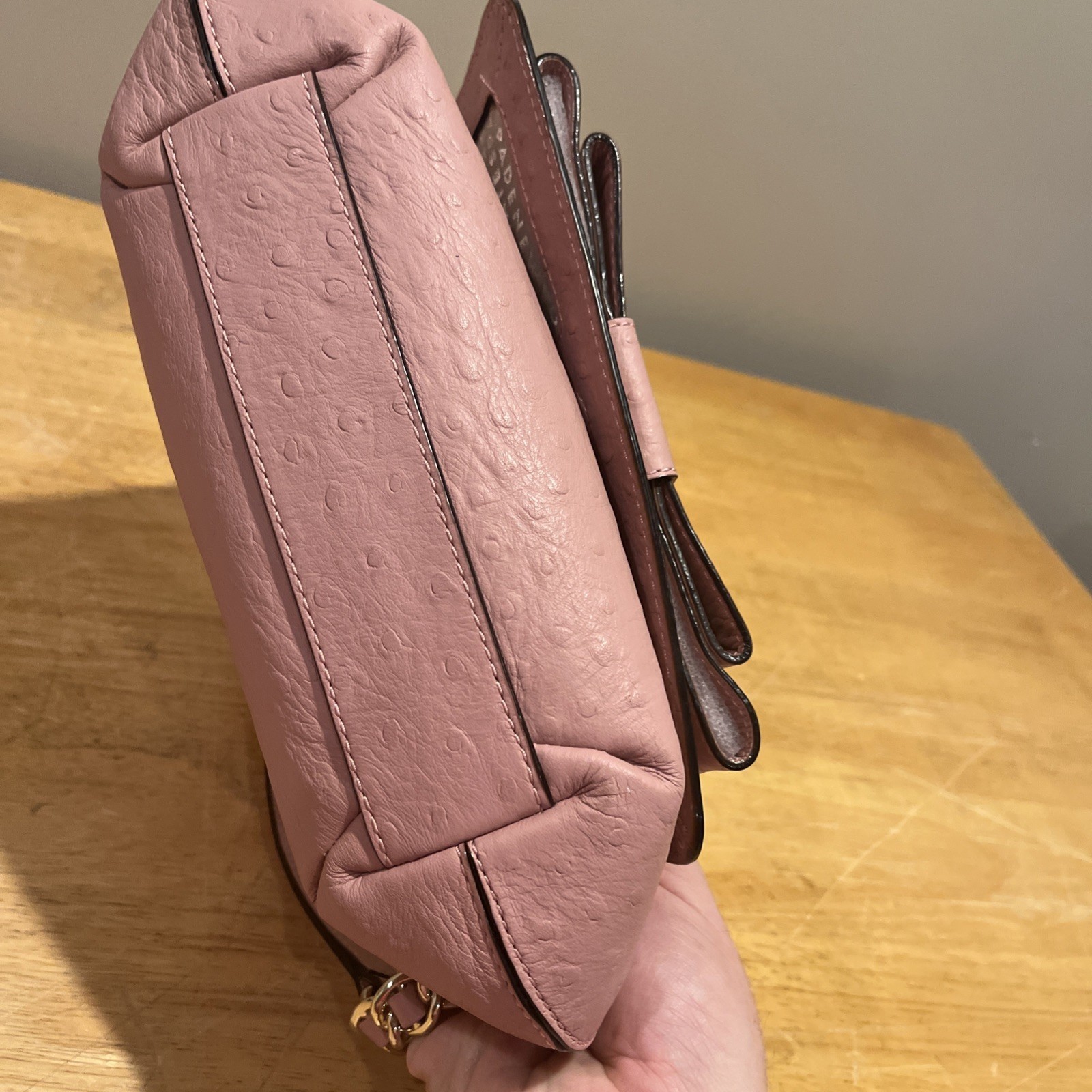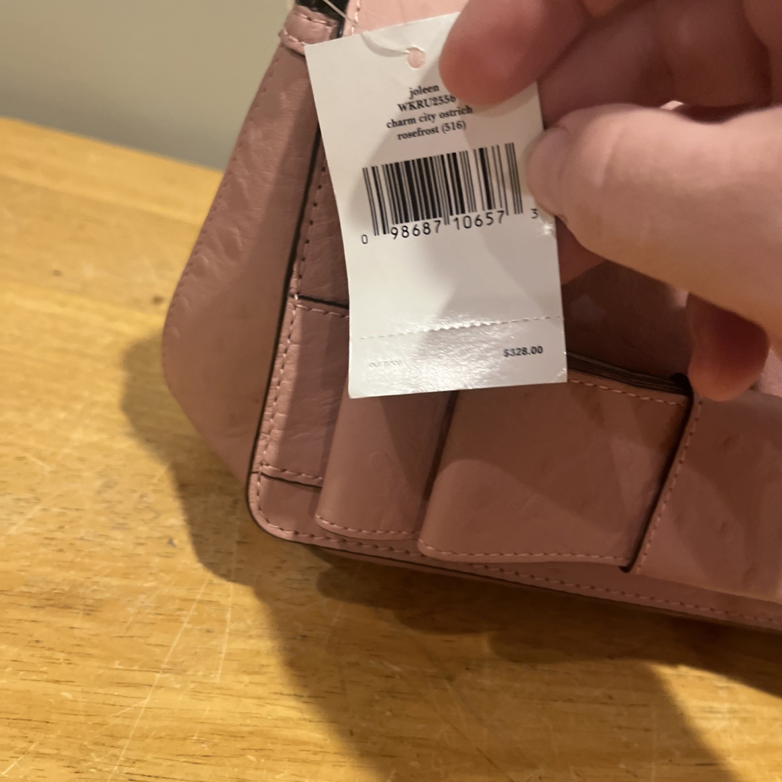 Kate Spade Joleen Ostrich Leather Charm City Purse Rose Pink Handbag Bow Chain
