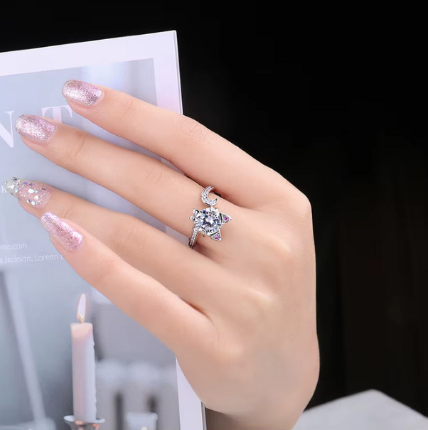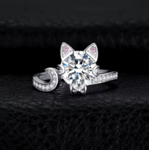 Classic 925 Sterling Silver 3CT Round Zirconia Creative Cat Adjustable Ring (6-8