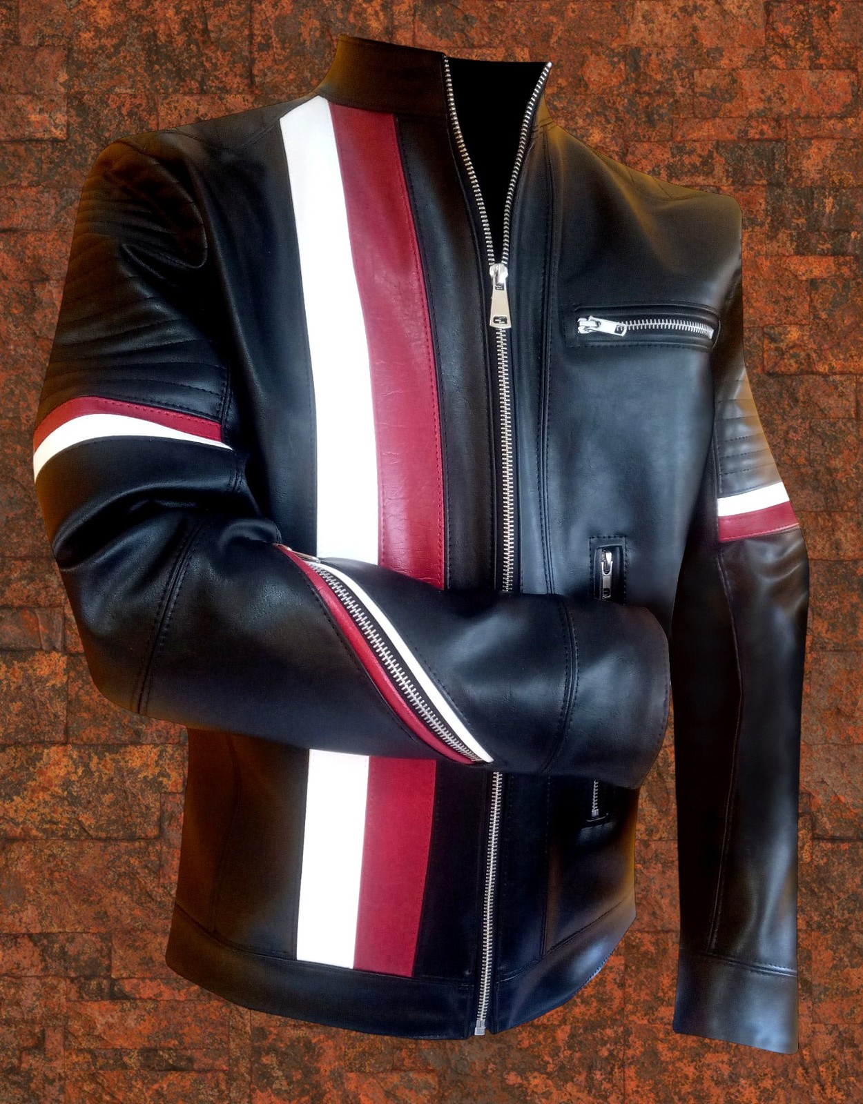 Men's faux leather jacket, handmade by Ahle. Flame model.