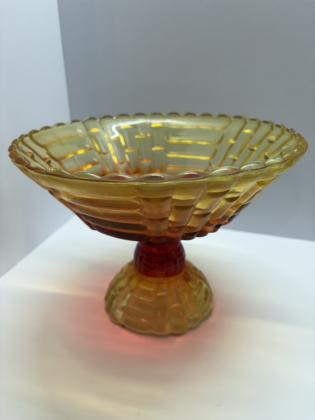 VTG Amberina Glass Large Pedestal Candy Dish Compote Jeanette Floragold (PH22)